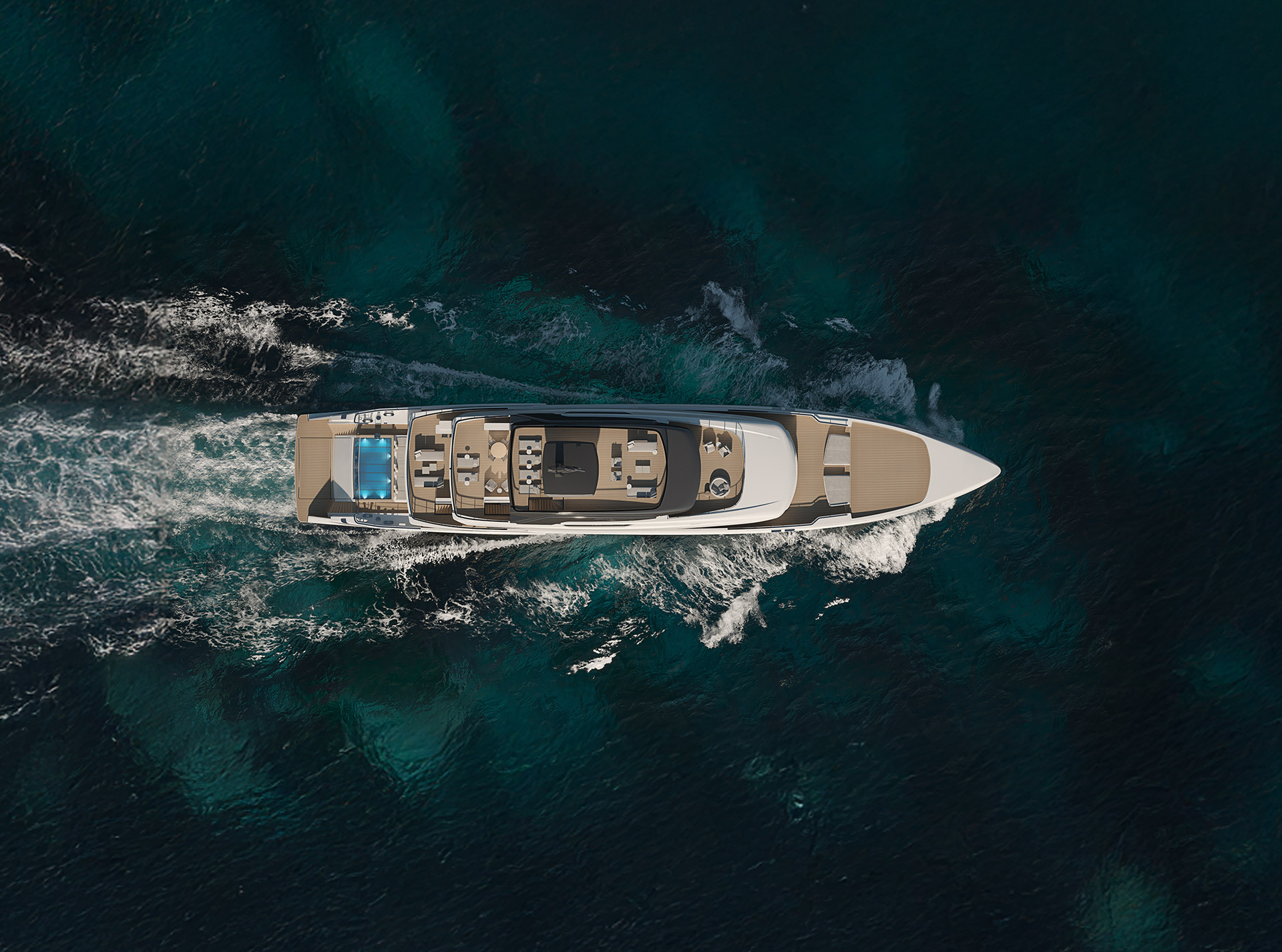 64 Steel elevates the Steel range to a new dimension, balancing expanded volumes and architectural purity. A superyacht conceived as a private retreat, where space, light and serenity shape an unseen experience at sea.