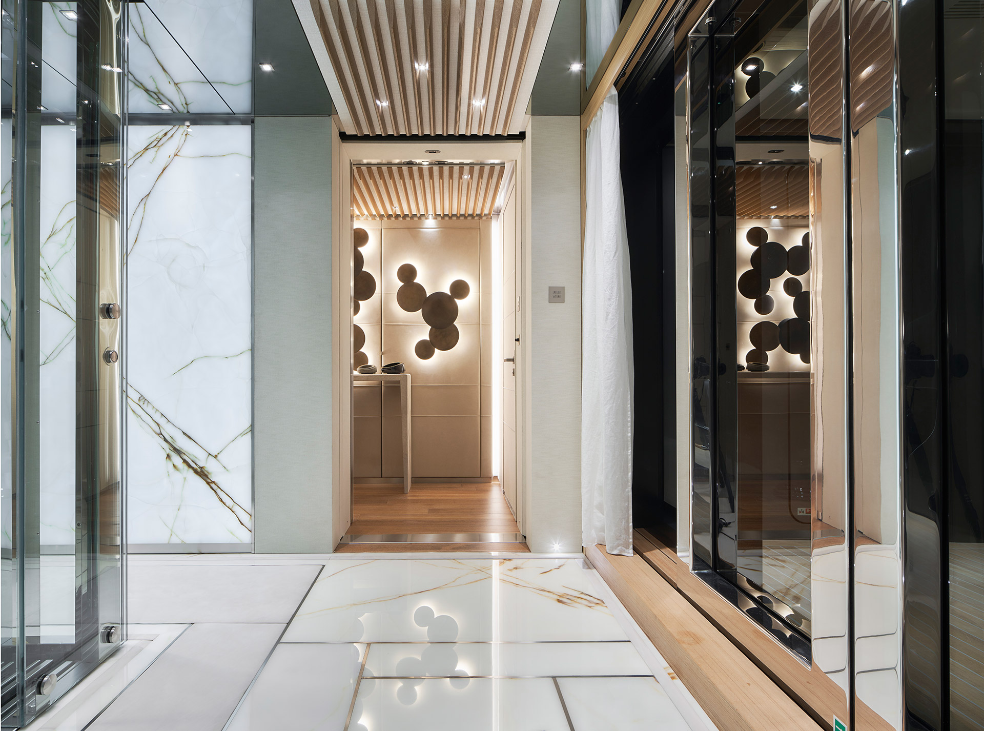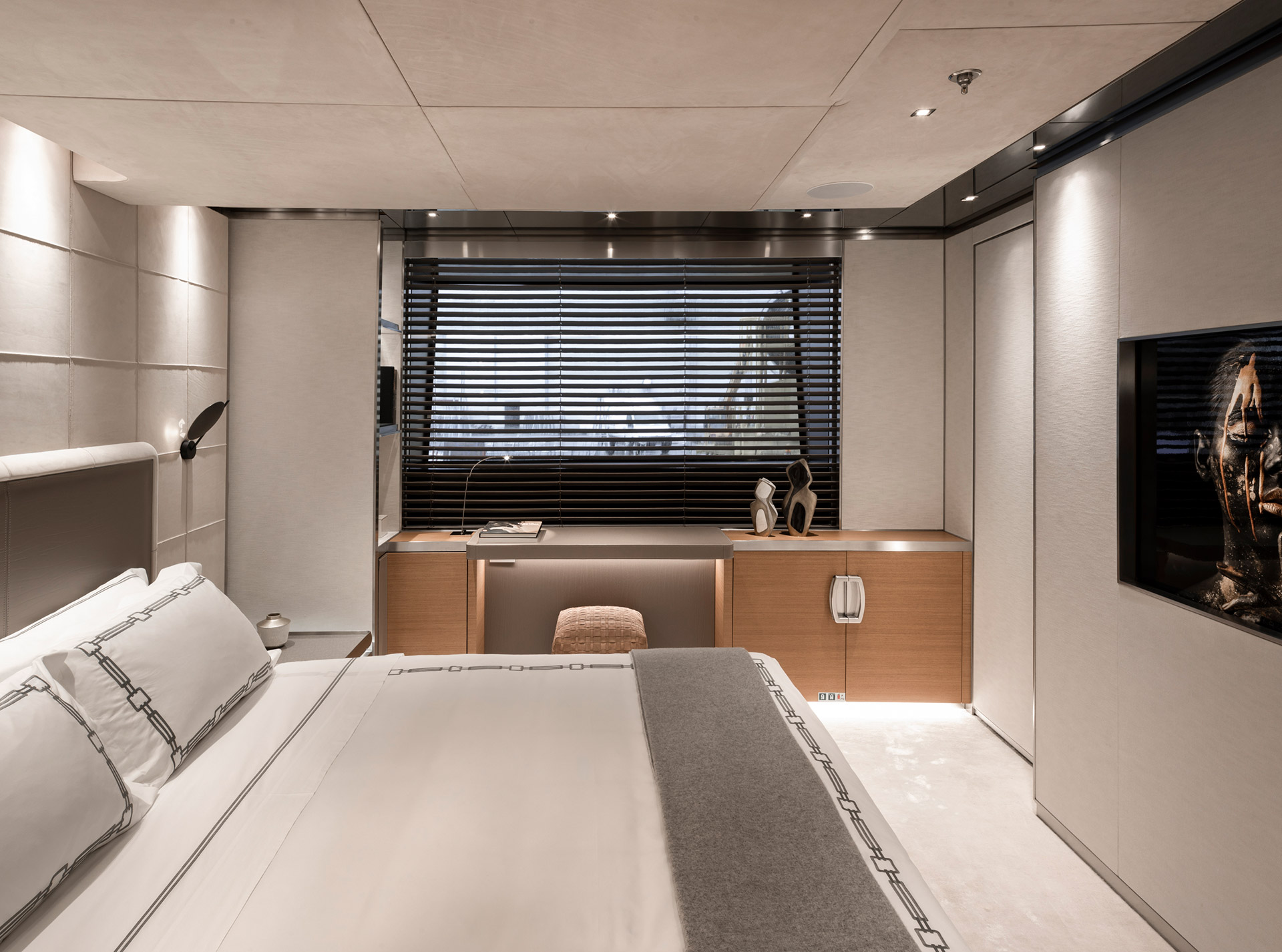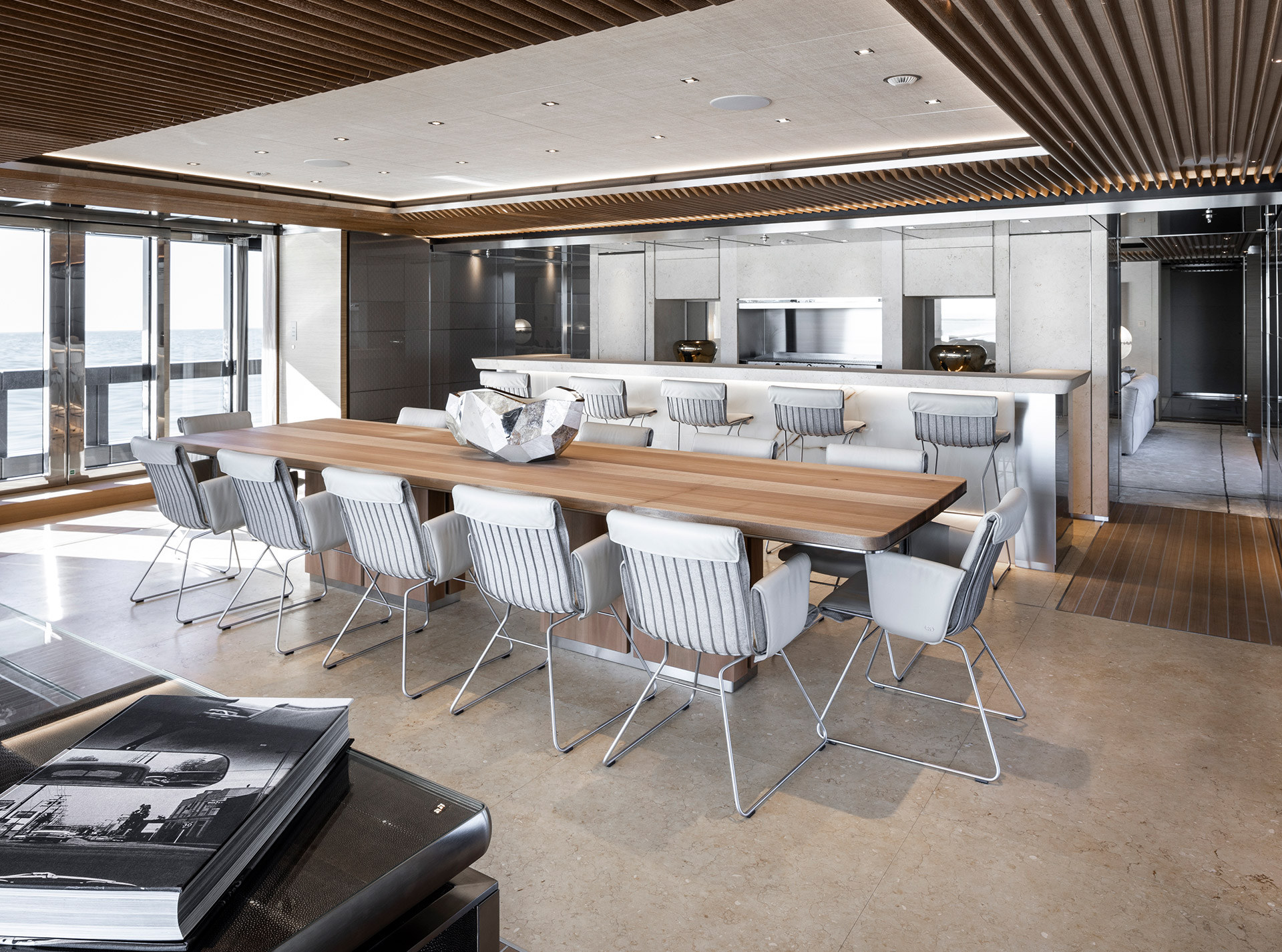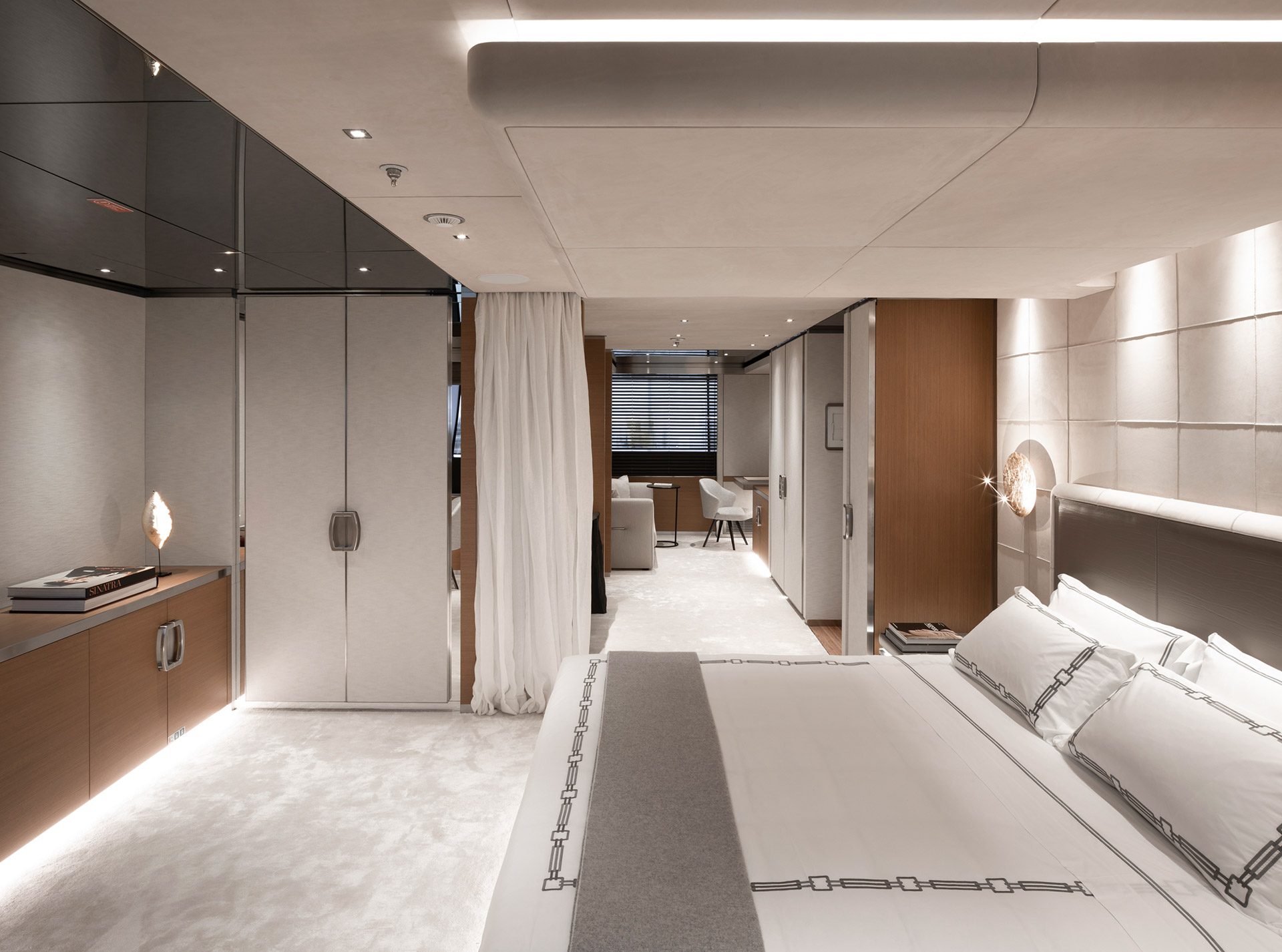 SHE reinterprets the stylistic codes of great classics of Italian yachting with a contemporary sensibility. The carefully coordinated interior design reflects this dual soul — both perpetual and modern.