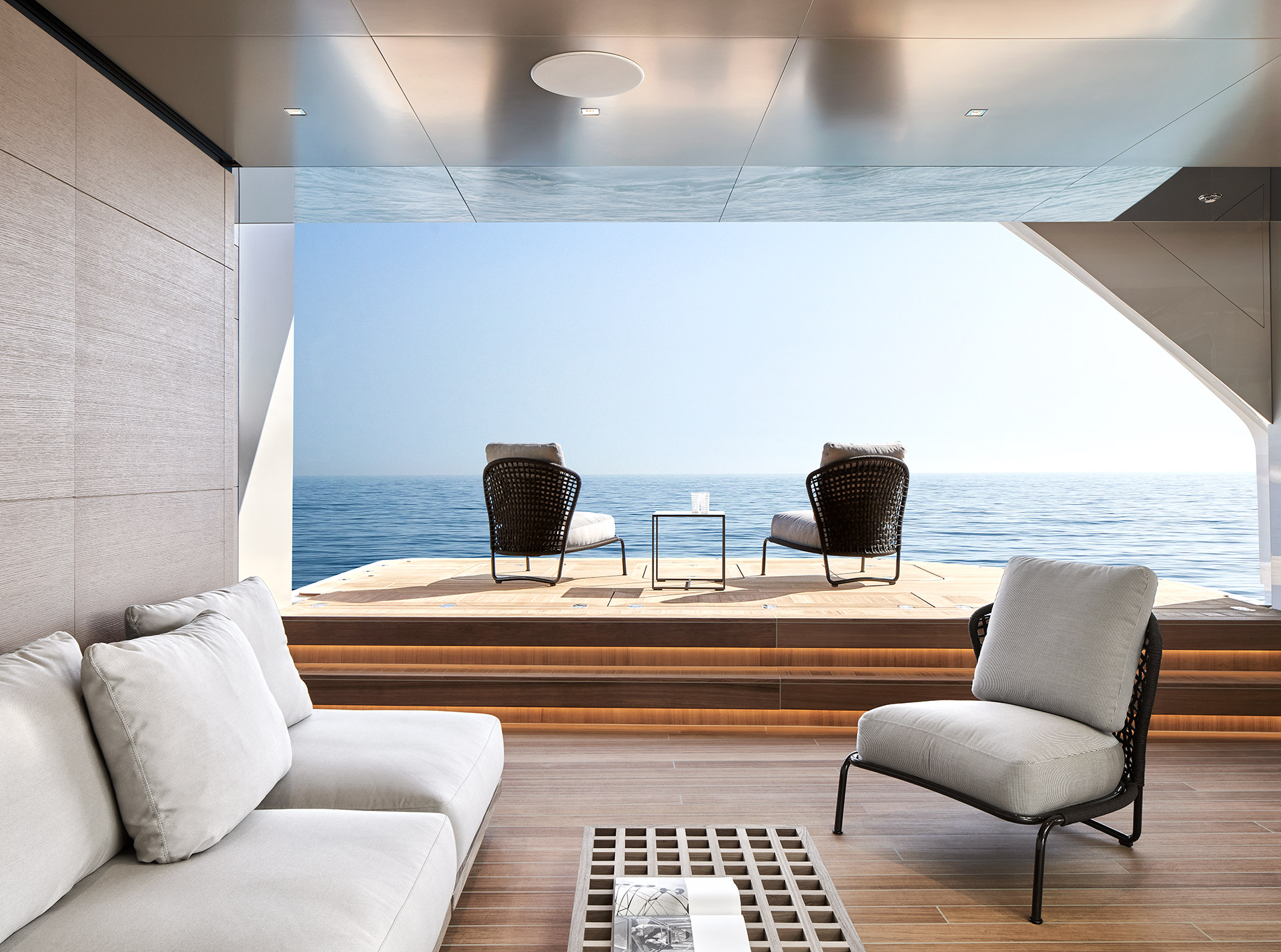 With pure, minimalist lines, SHE evokes 1960s grace — a yacht with classic Italian elegance and a hi-tech soul. Conceived for living, her generous volumes and instantly recognizable design reflect the language of Sanlorenzo.