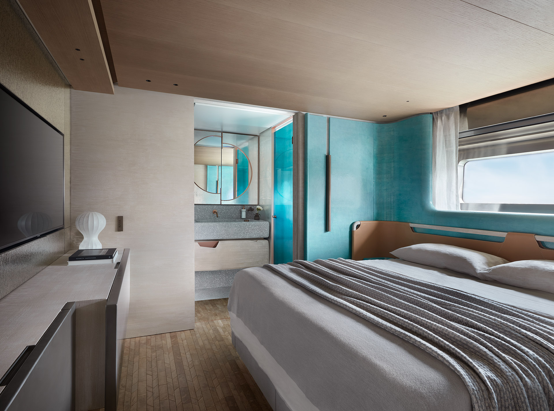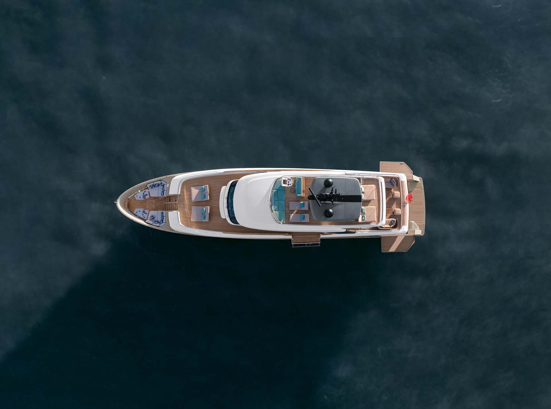 SHE reinterprets the stylistic codes of great classics of Italian yachting with a contemporary sensibility. The carefully coordinated interior design reflects this dual soul — both perpetual and modern.