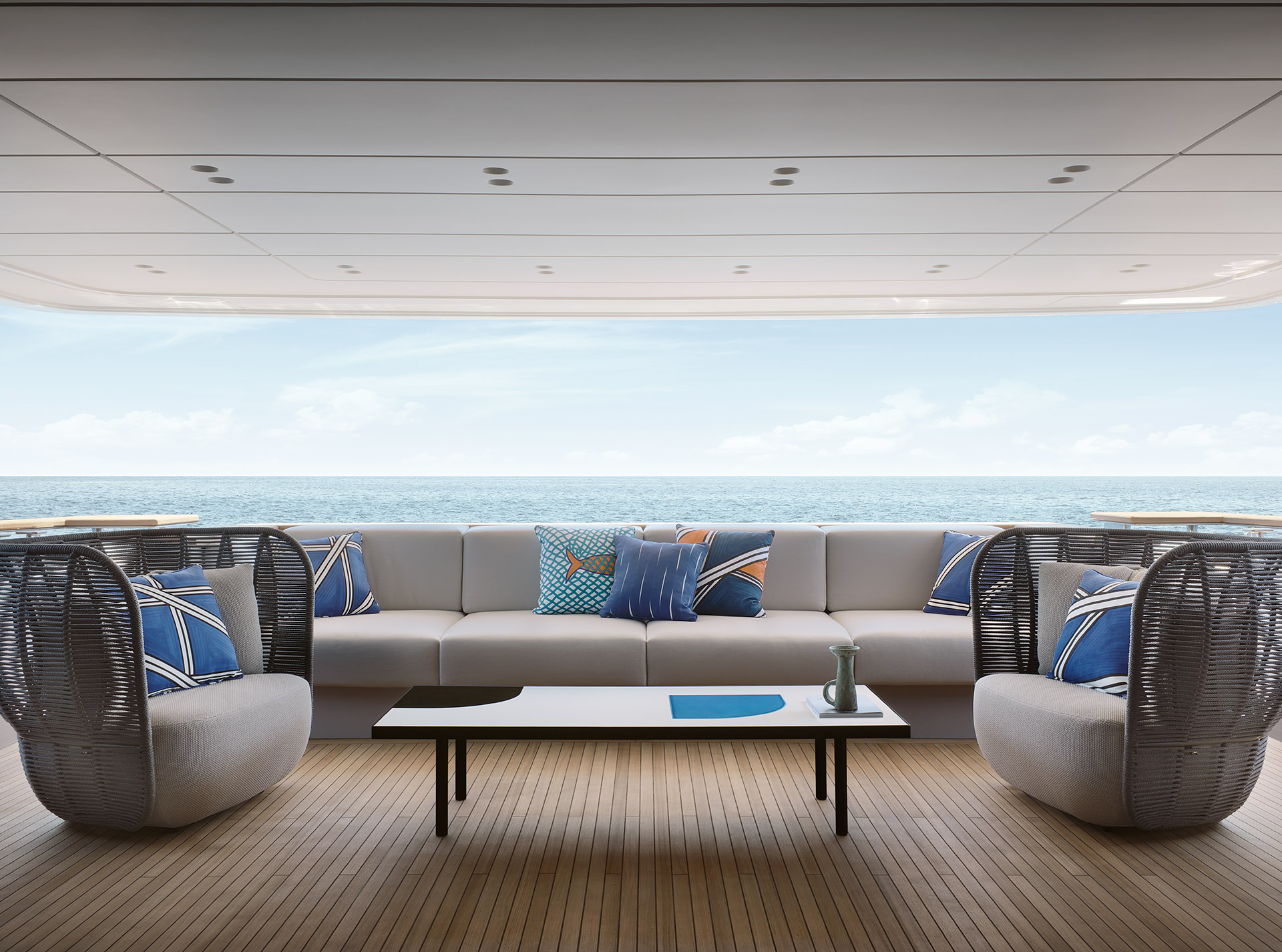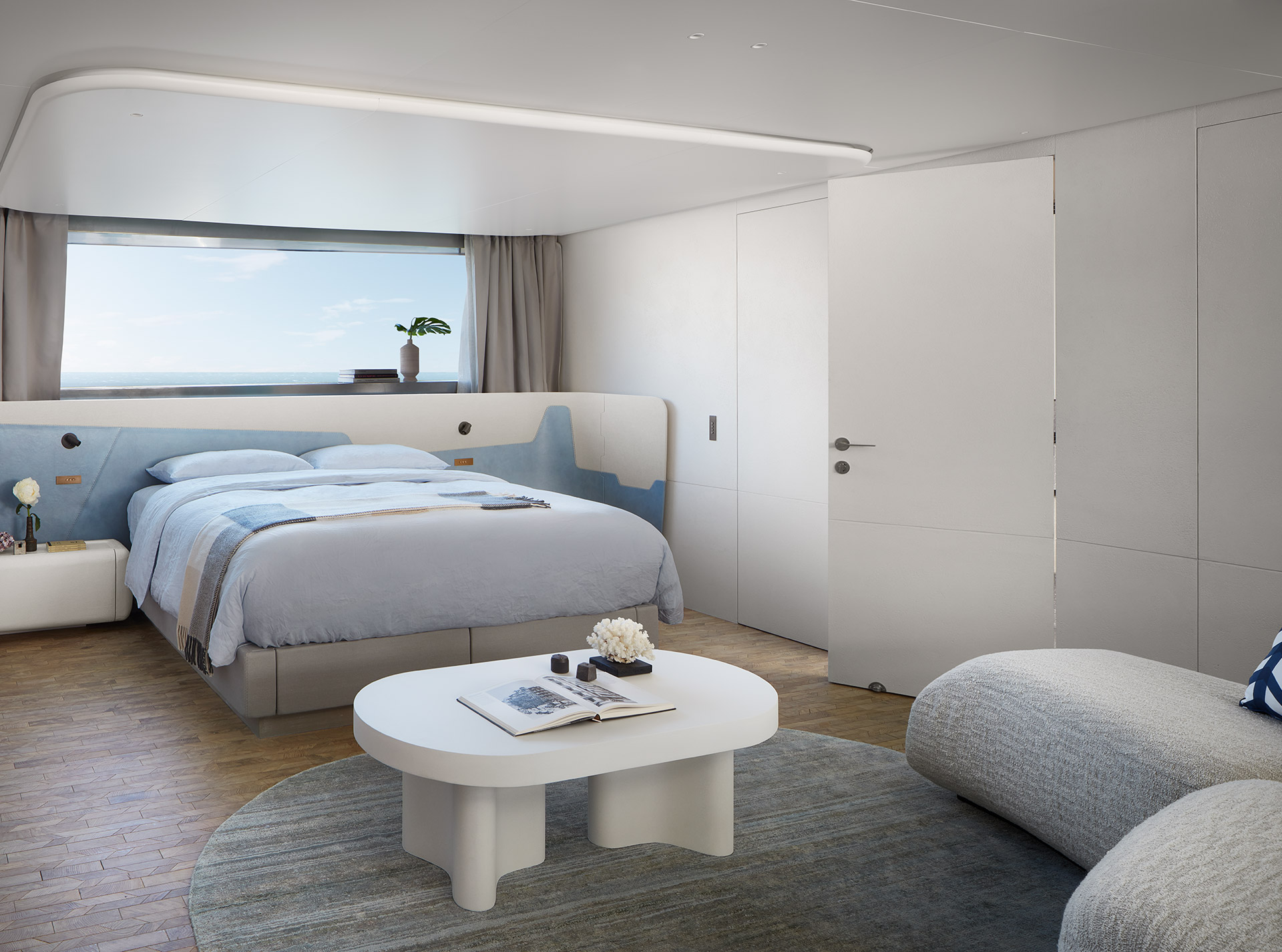 The SD118 transforms on-board living with innovative asymmetry and expansive spaces, creating a seamless connection with the sea