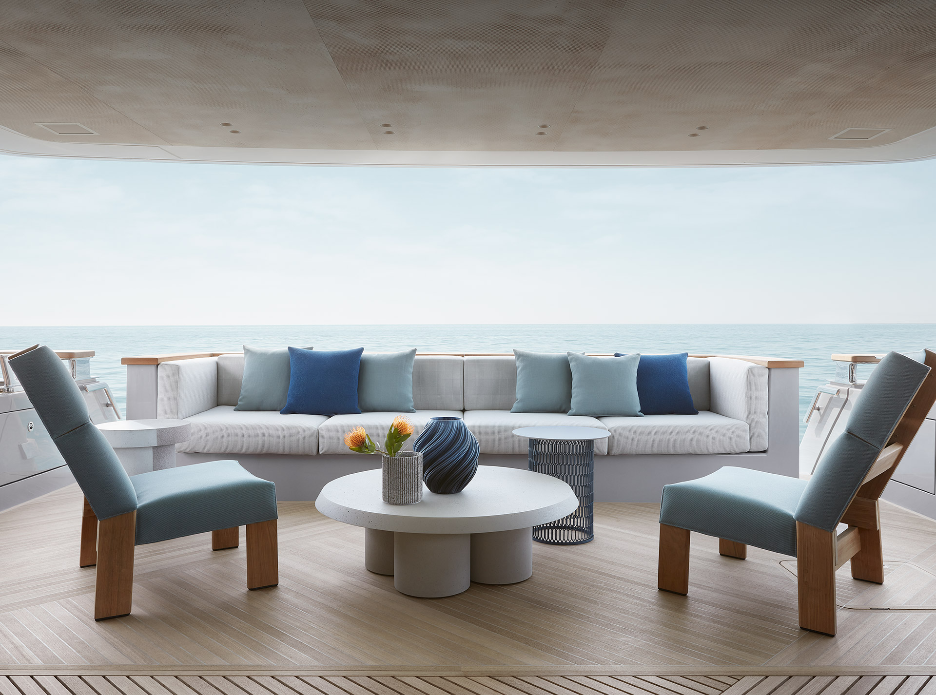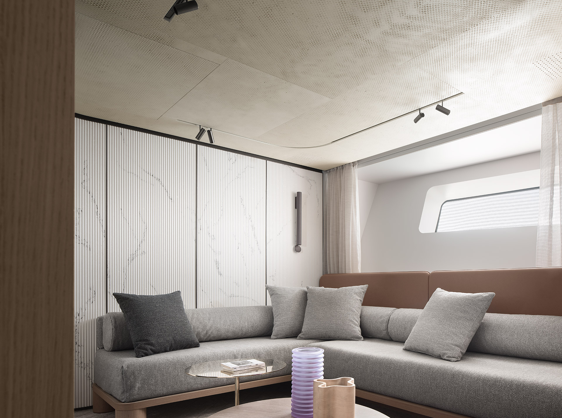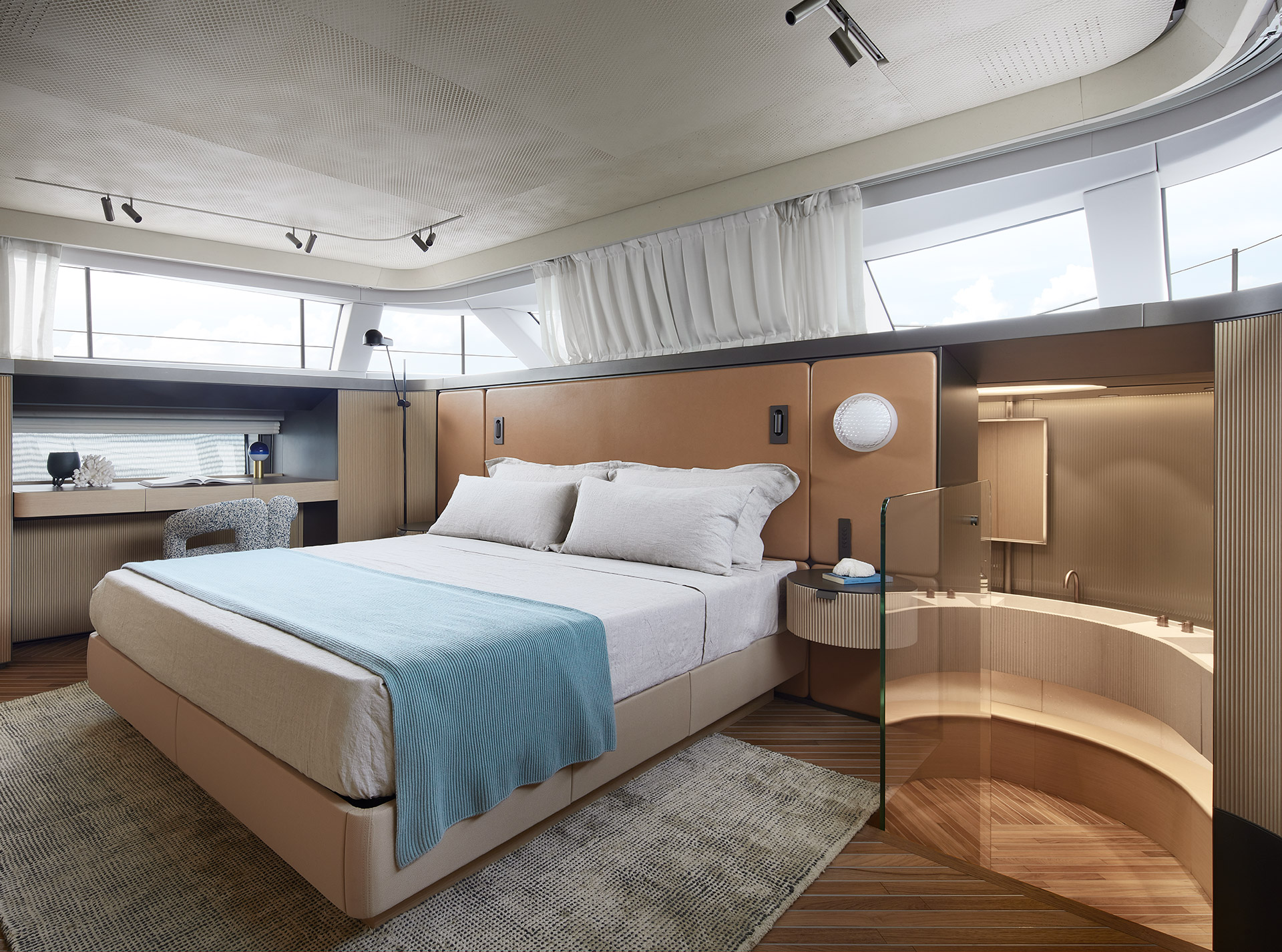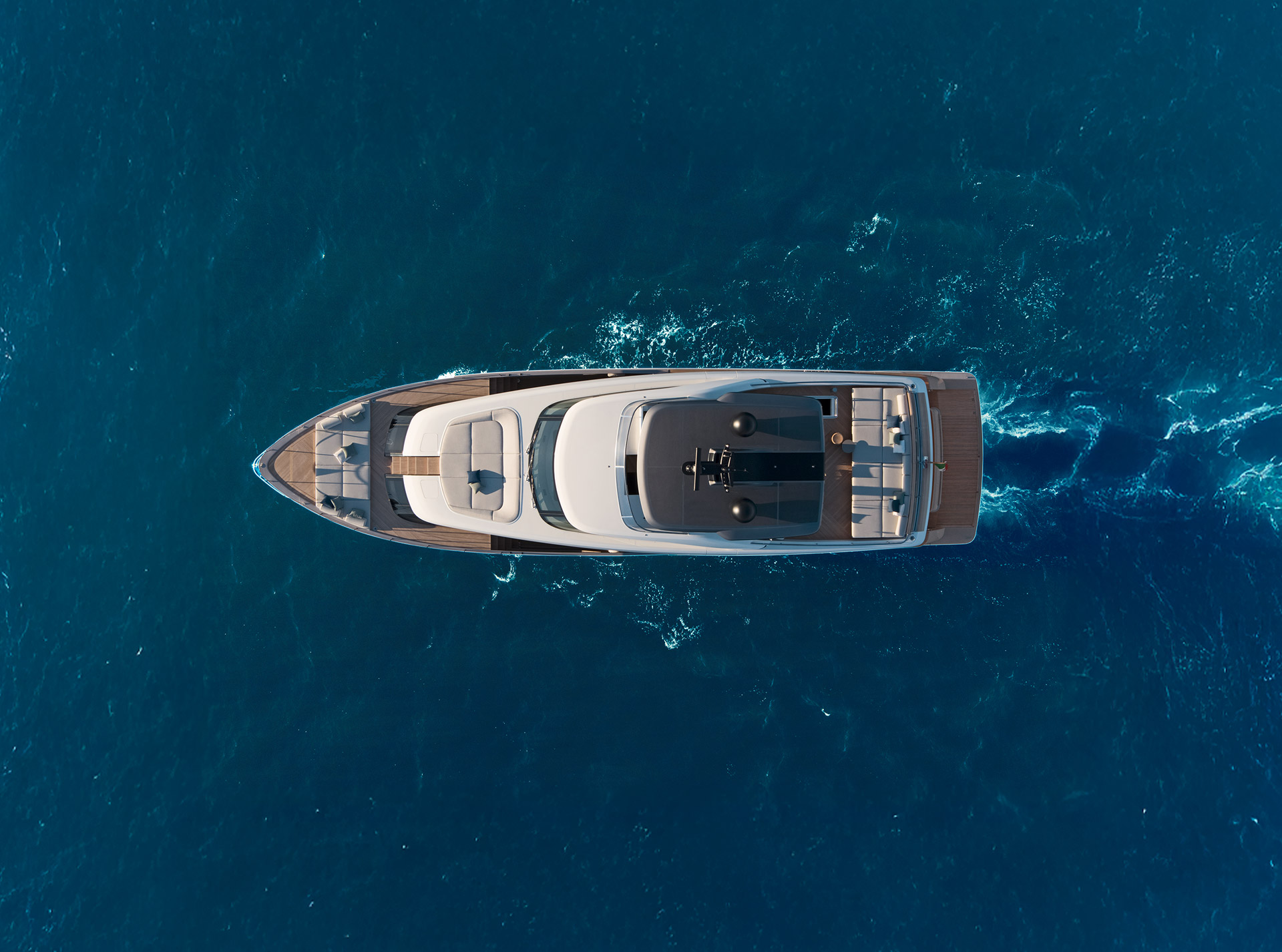 SHE reinterprets the stylistic codes of great classics of Italian yachting with a contemporary sensibility. The carefully coordinated interior design reflects this dual soul — both perpetual and modern.