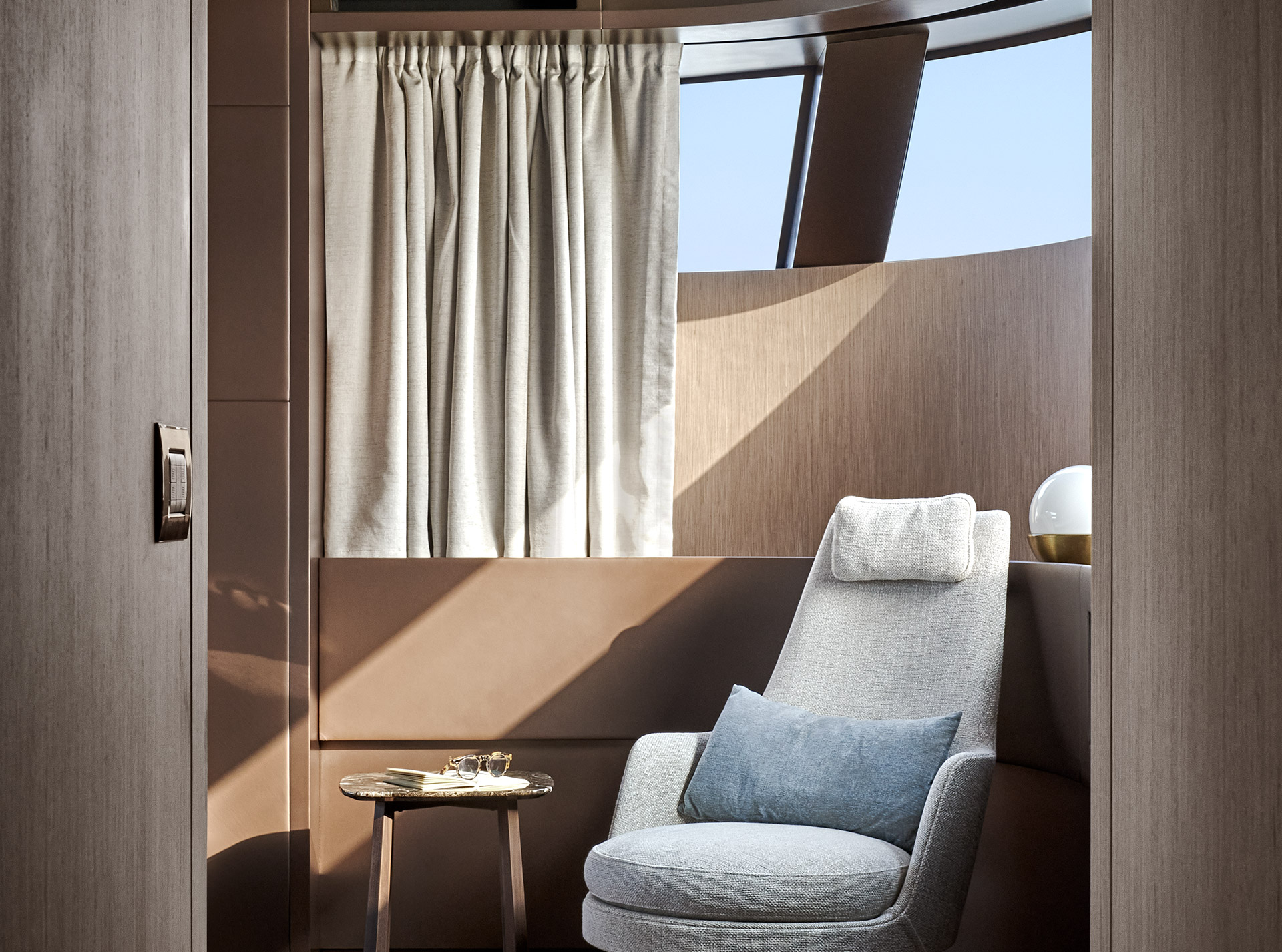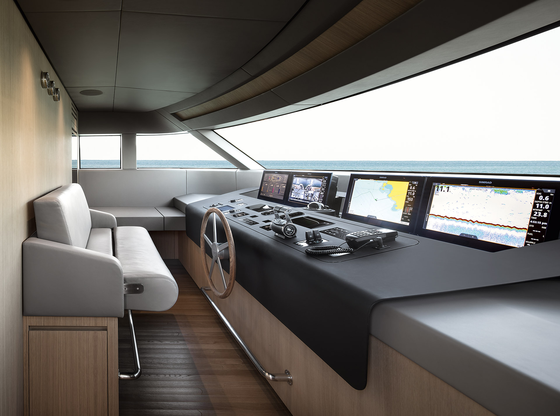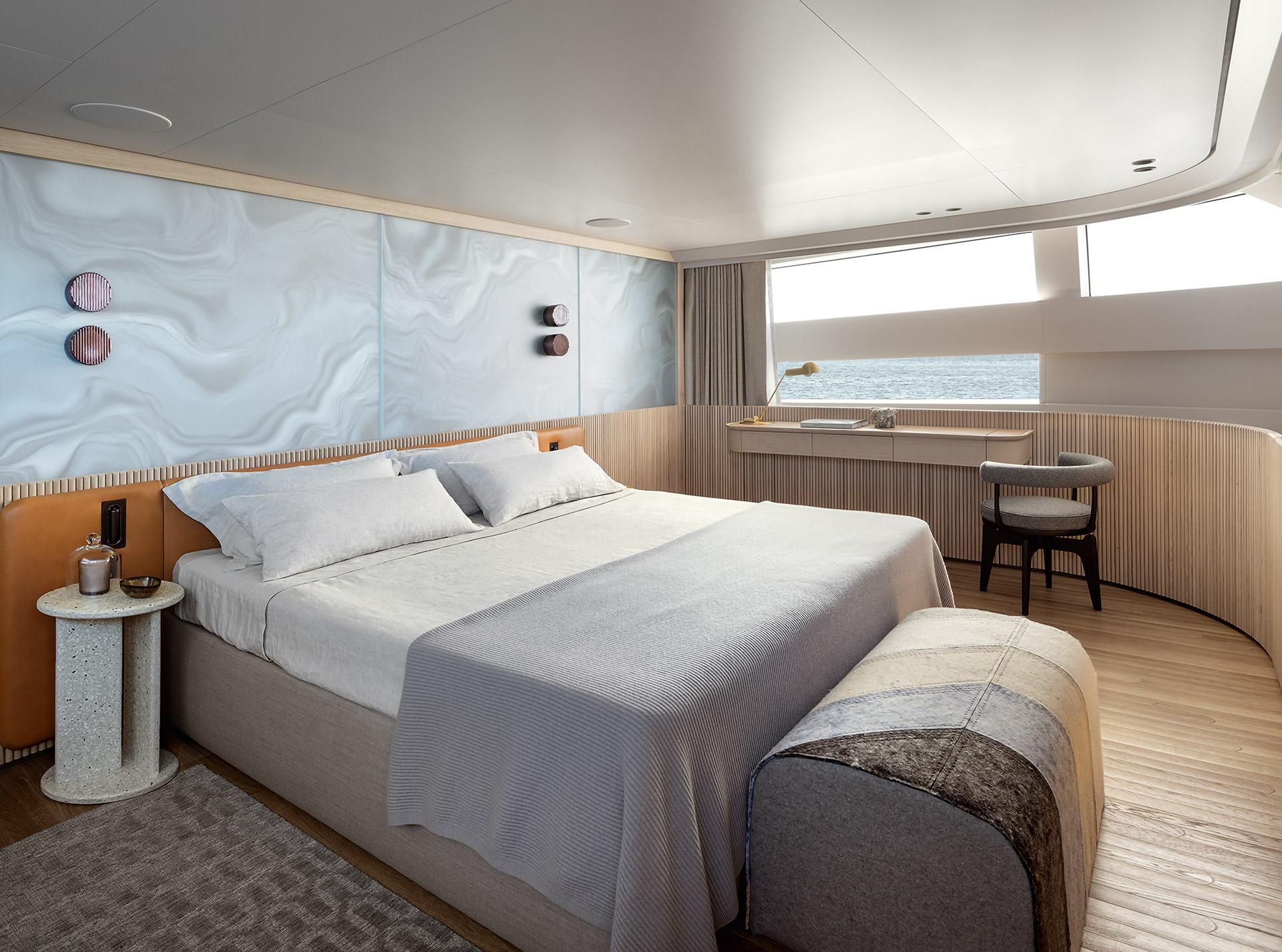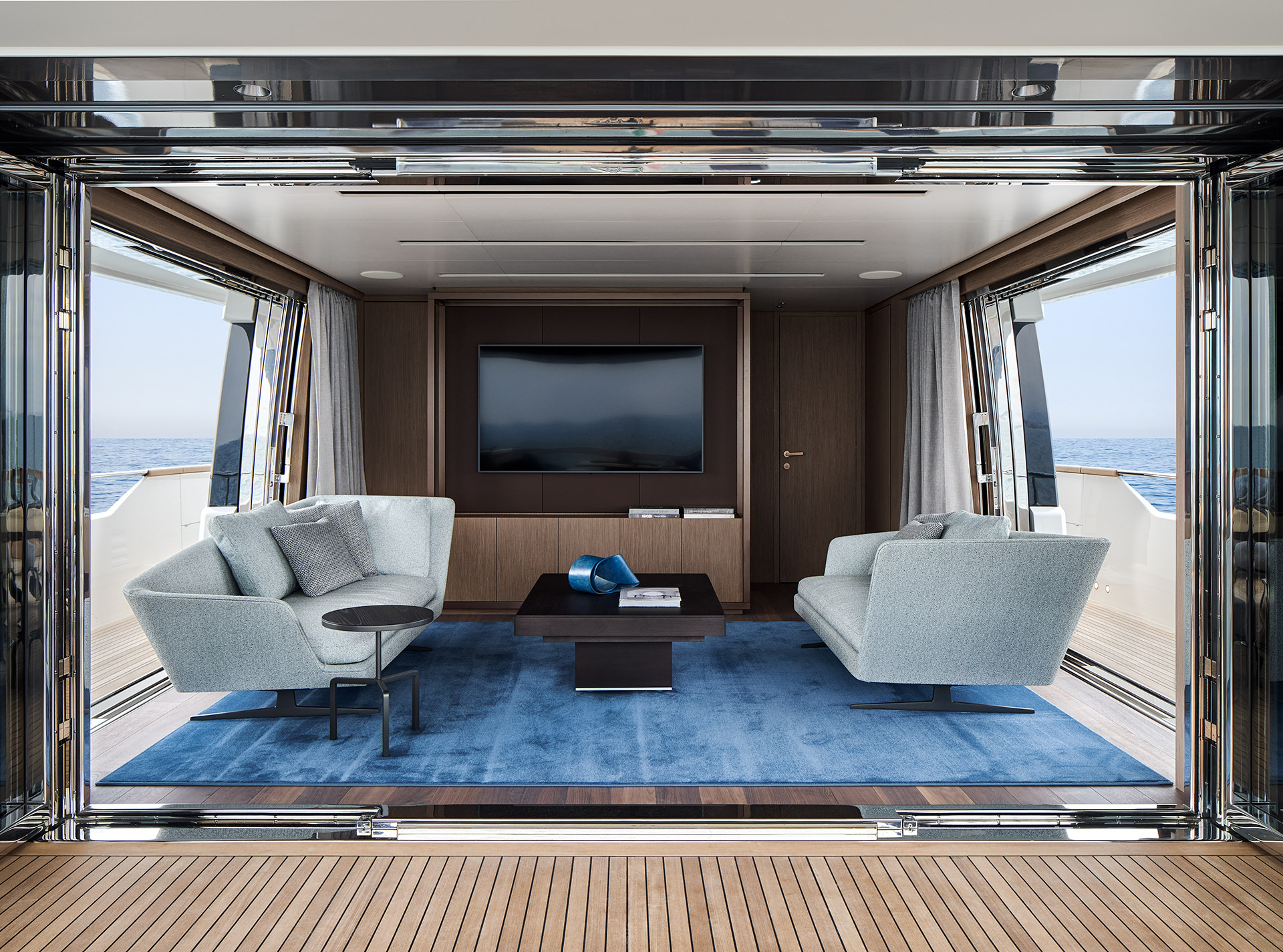 SHE reinterprets the stylistic codes of great classics of Italian yachting with a contemporary sensibility. The carefully coordinated interior design reflects this dual soul — both perpetual and modern.