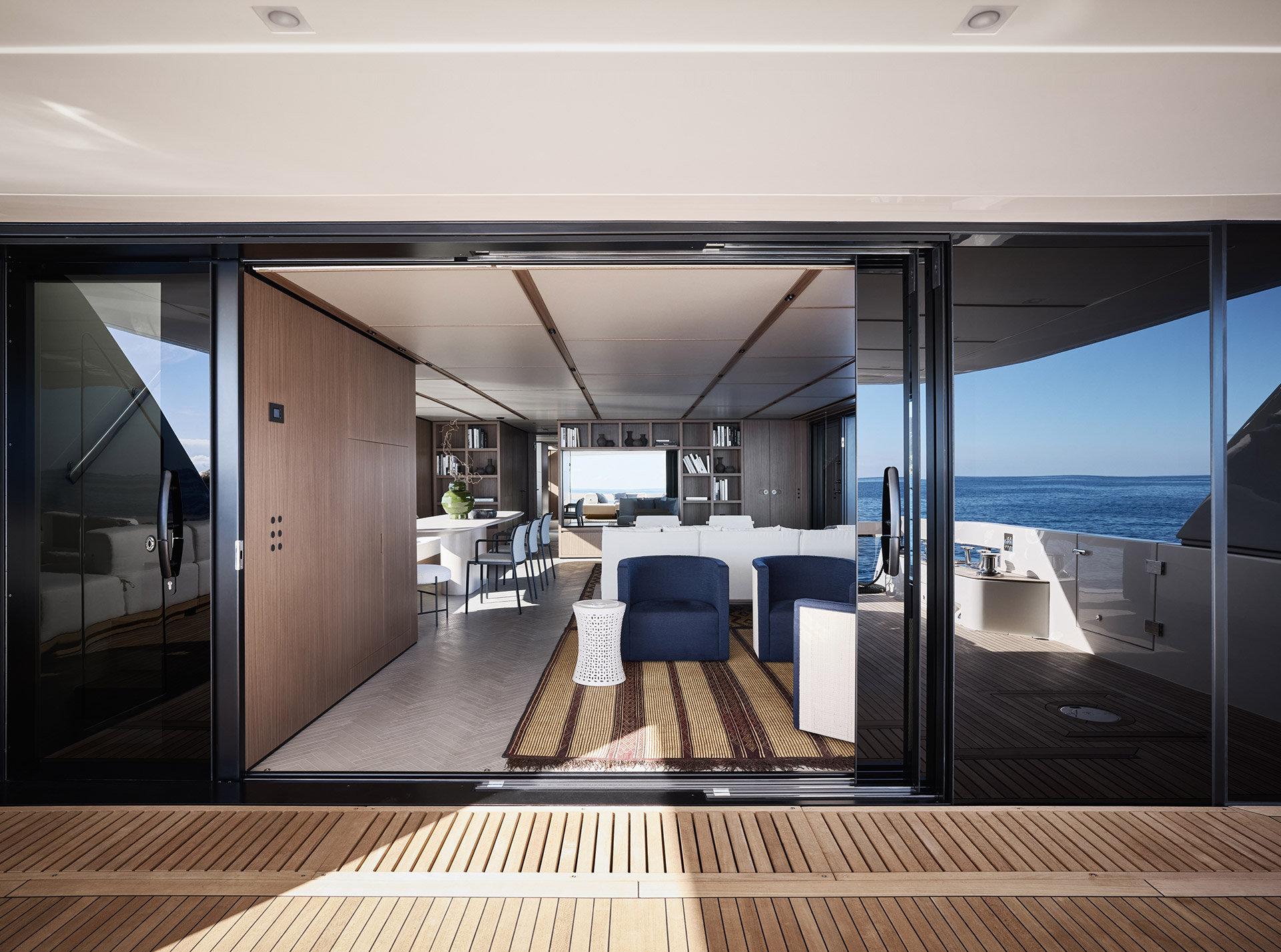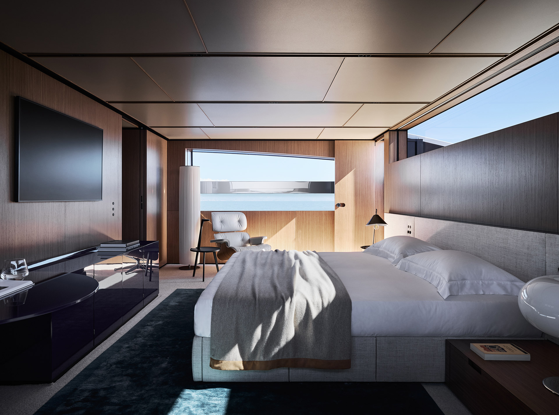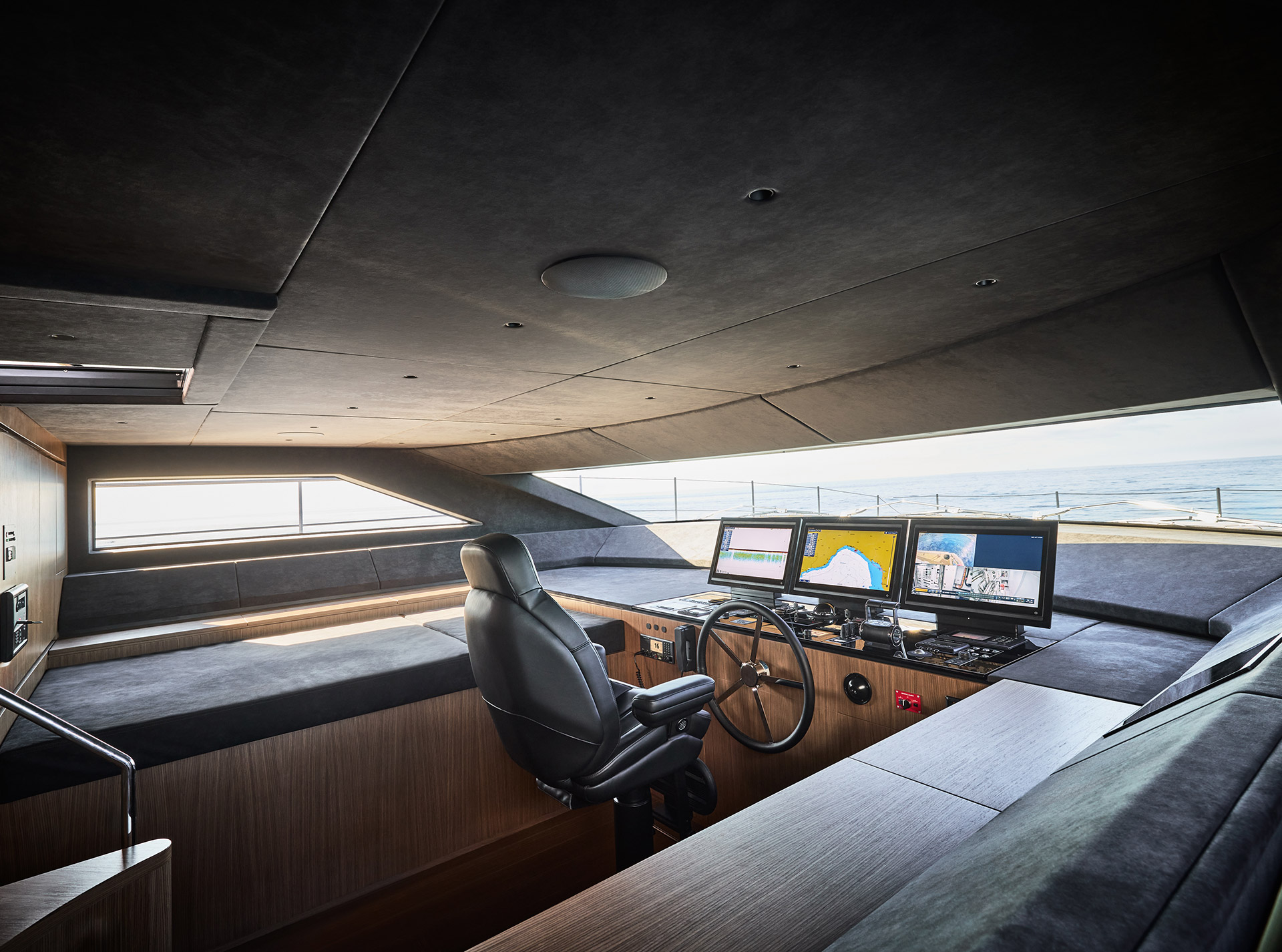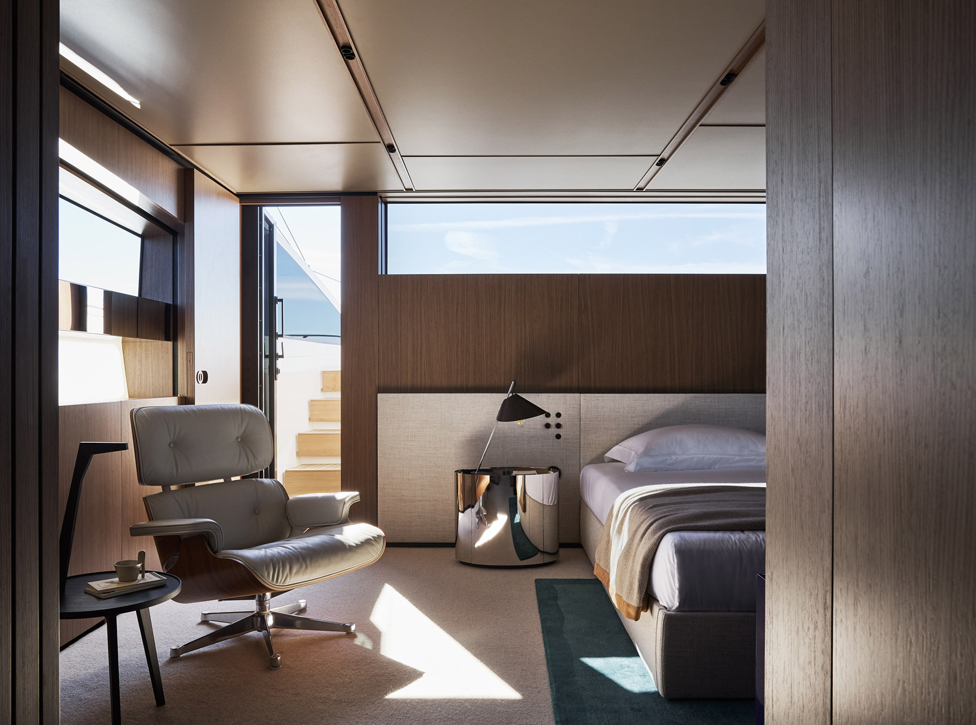 Asymmetry is not just aesthetic: it makes the interior space feel larger, offering a window onto the horizon and a sense of openness that transforms life on board.
