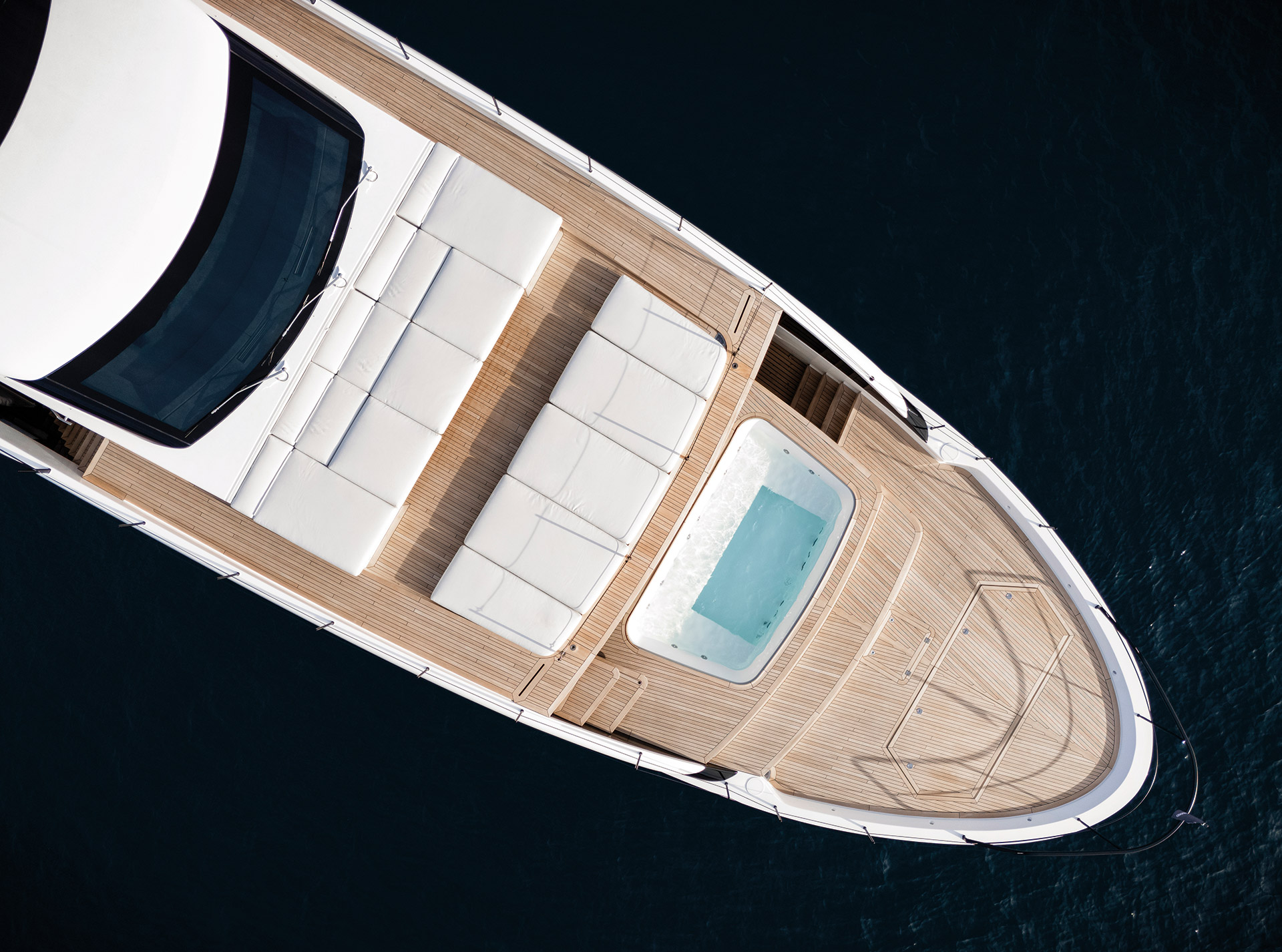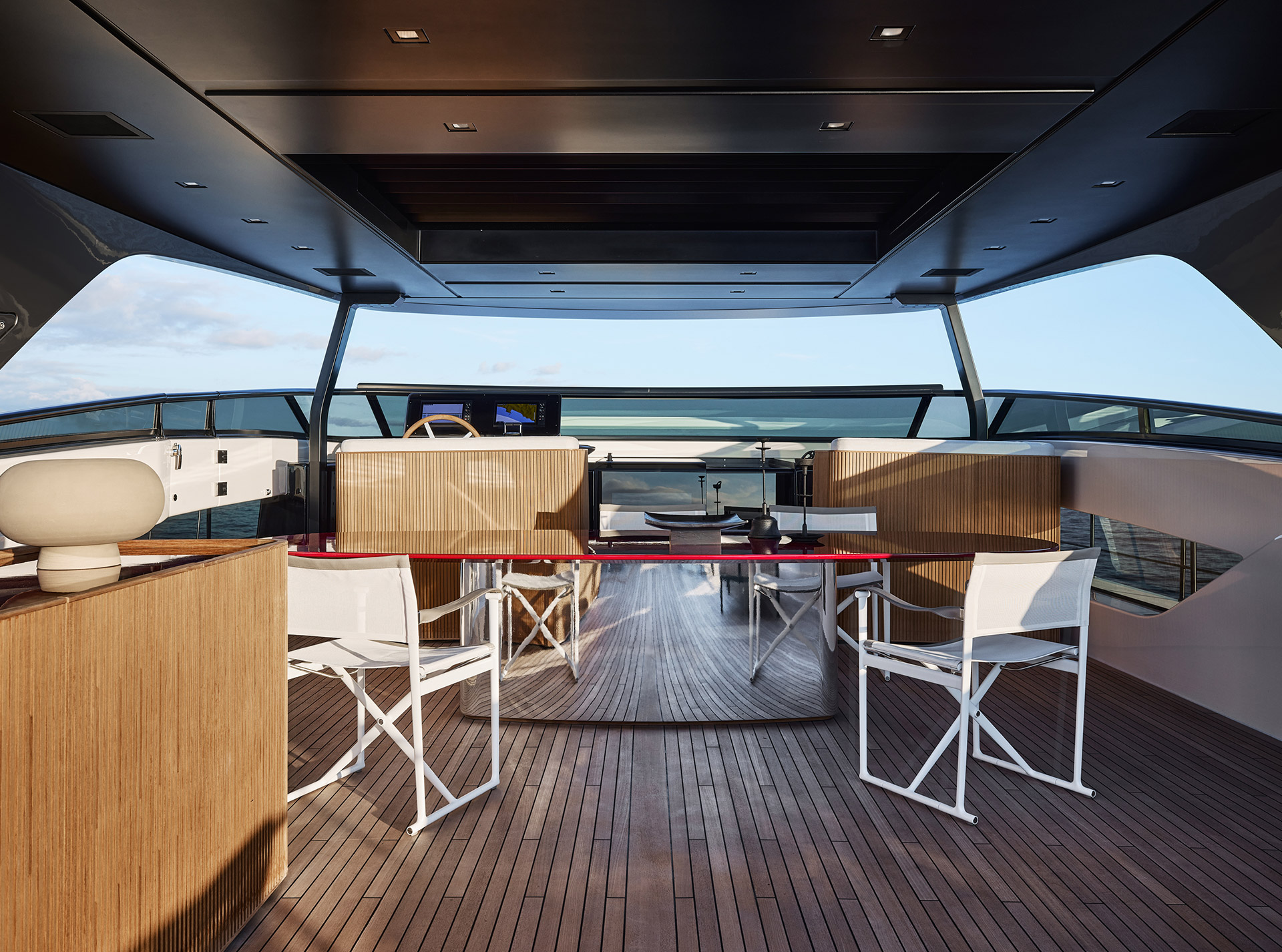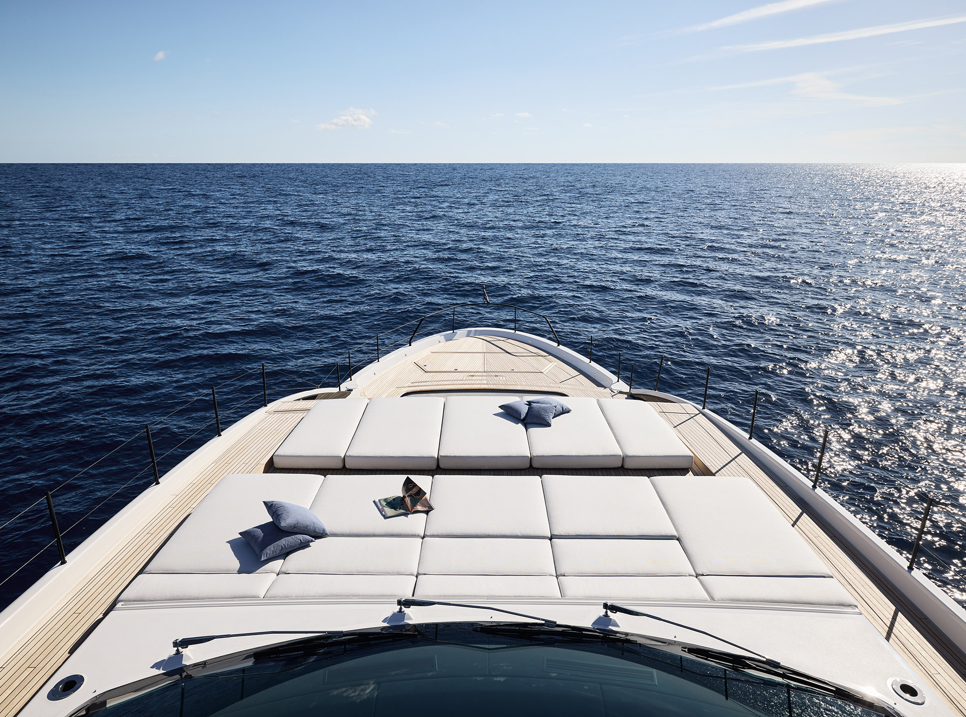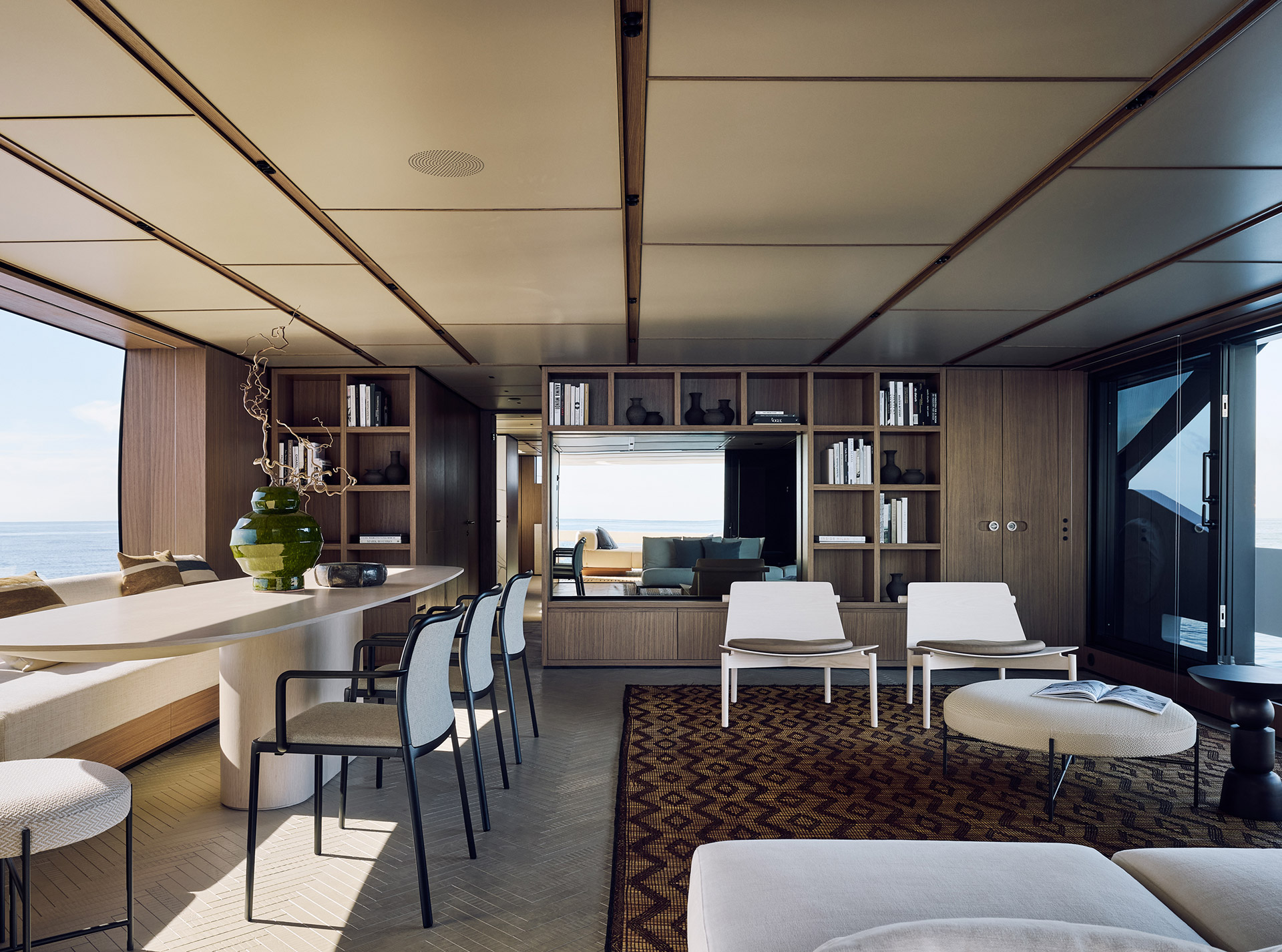 Asymmetry is not just aesthetic: it makes the interior space feel larger, offering a window onto the horizon and a sense of openness that transforms life on board.