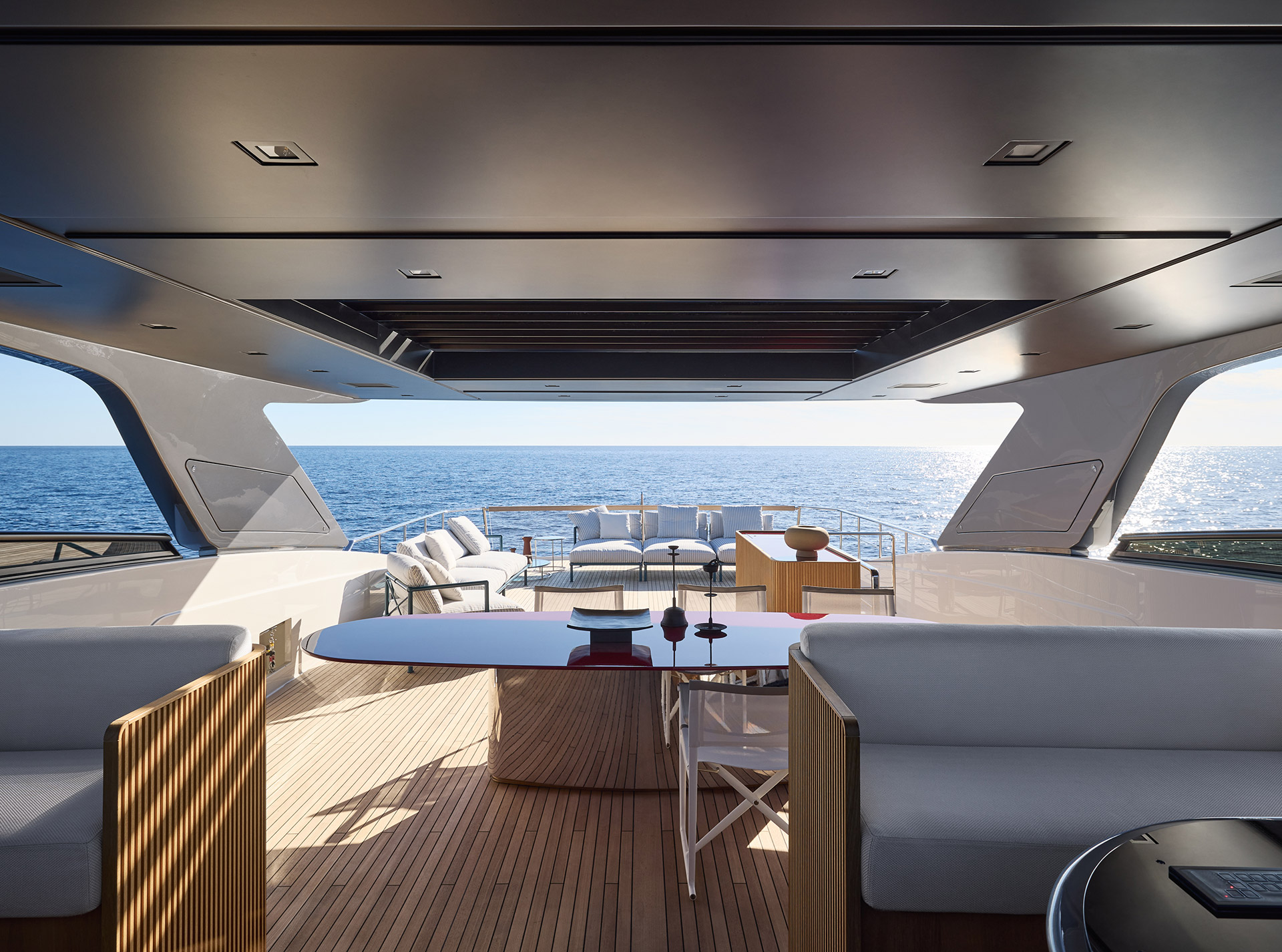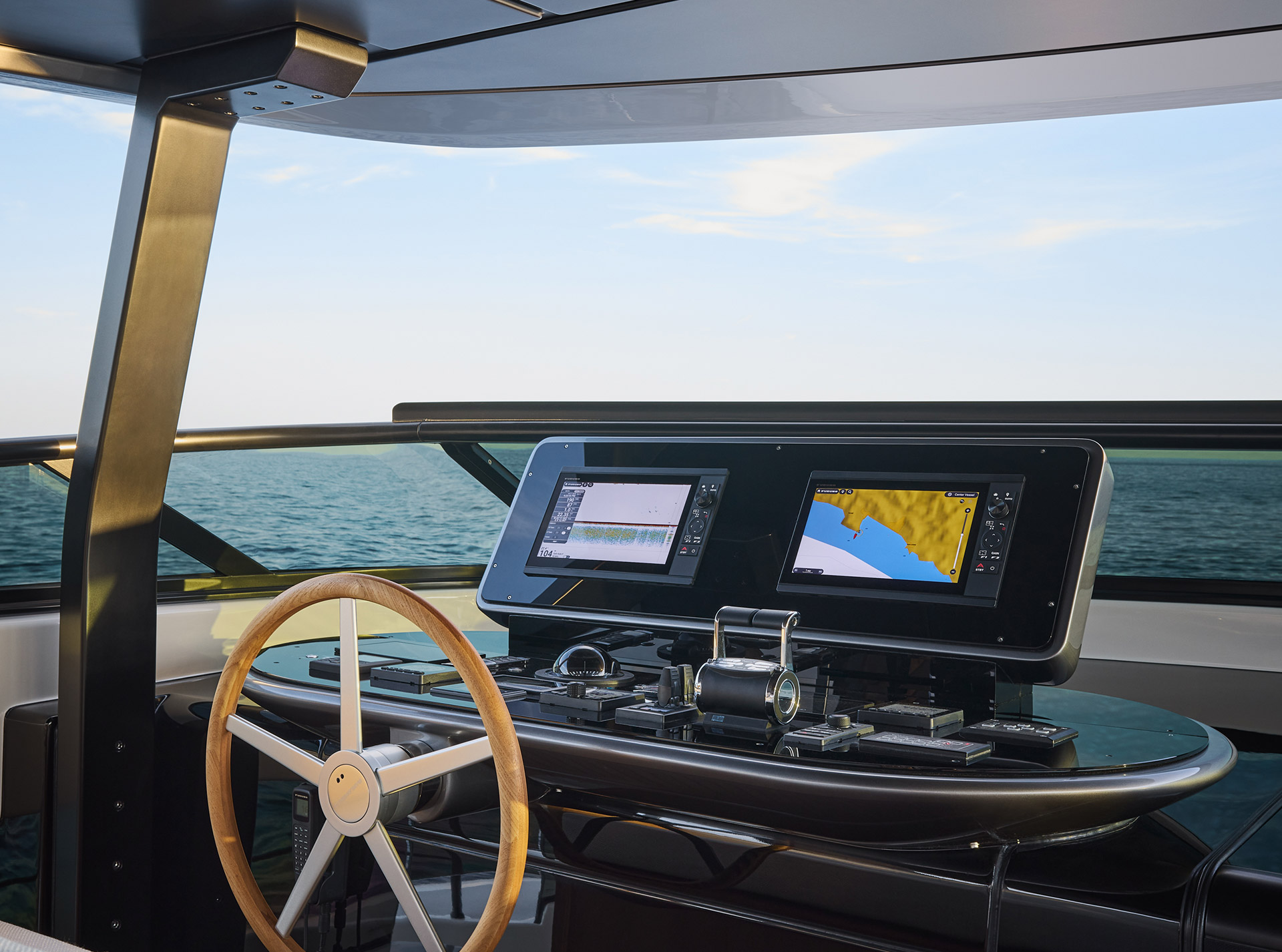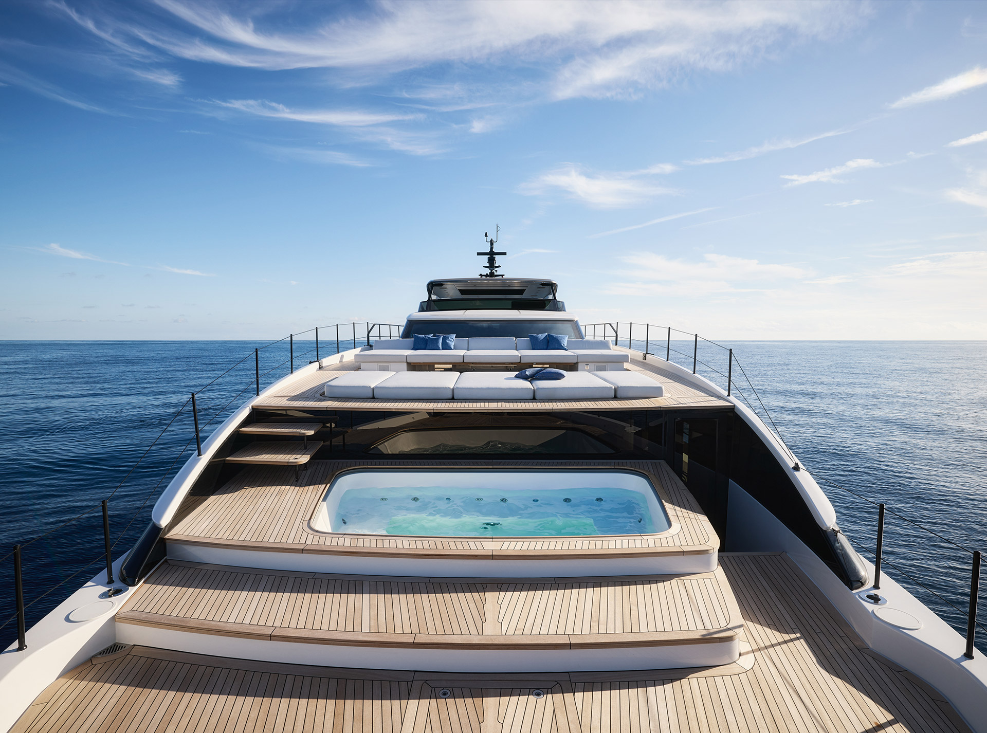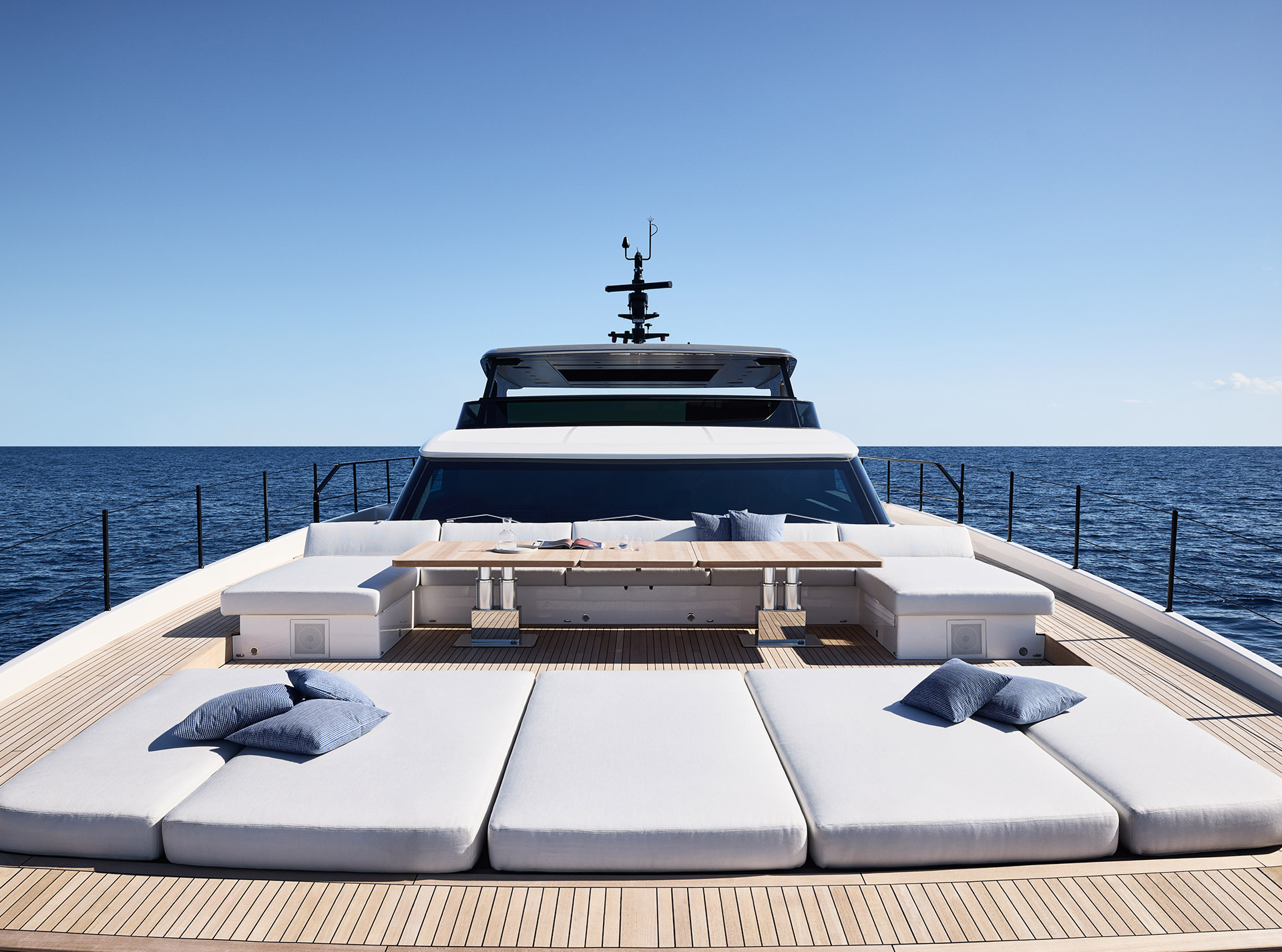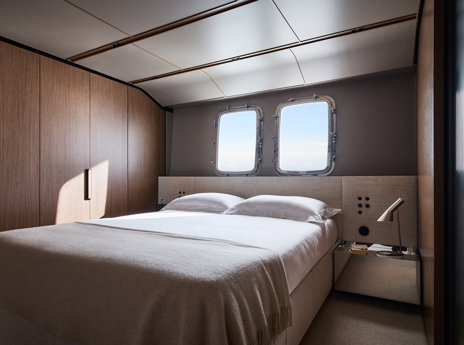 Asymmetry is not just aesthetic: it makes the interior space feel larger, offering a window onto the horizon and a sense of openness that transforms life on board.