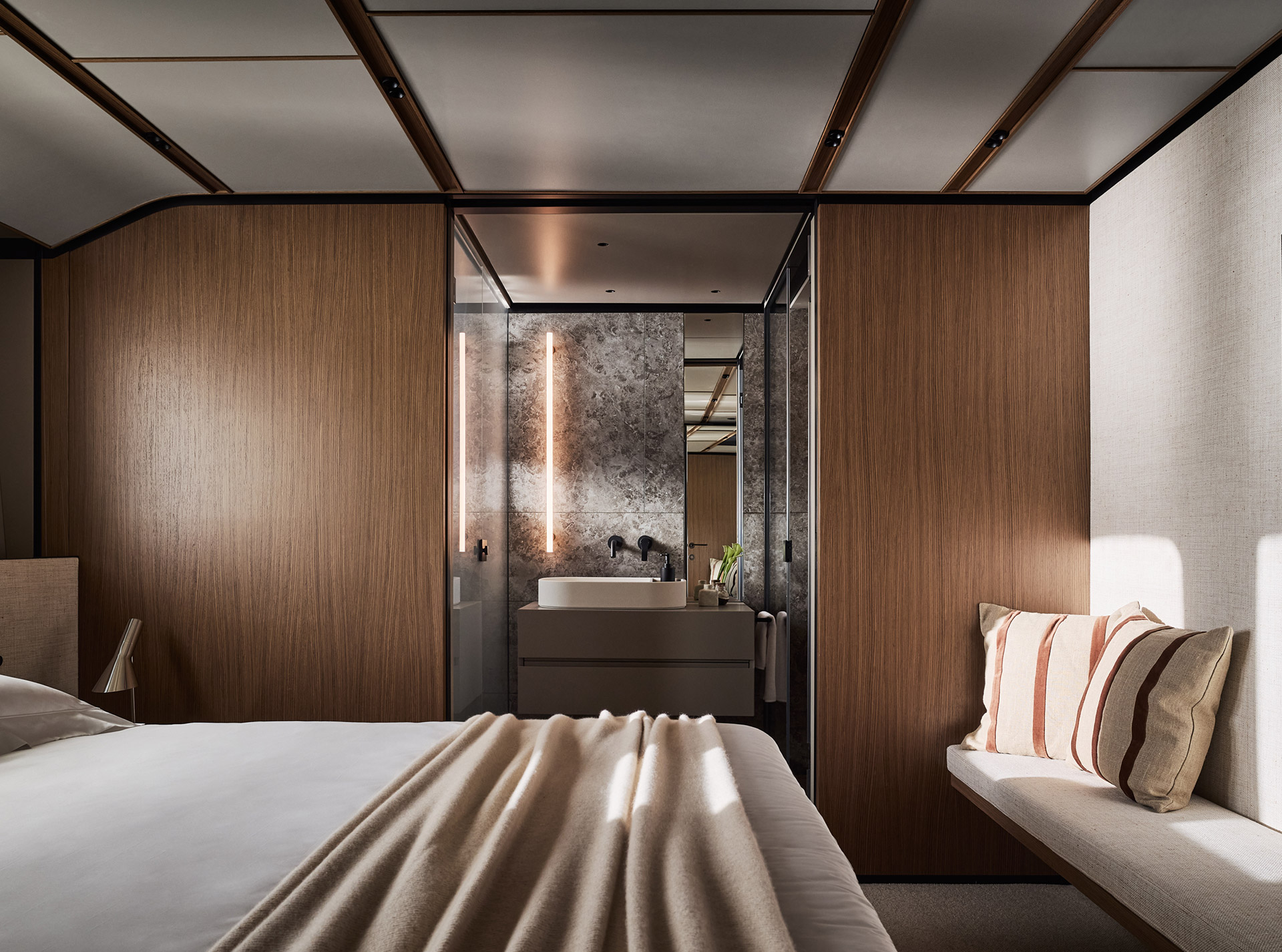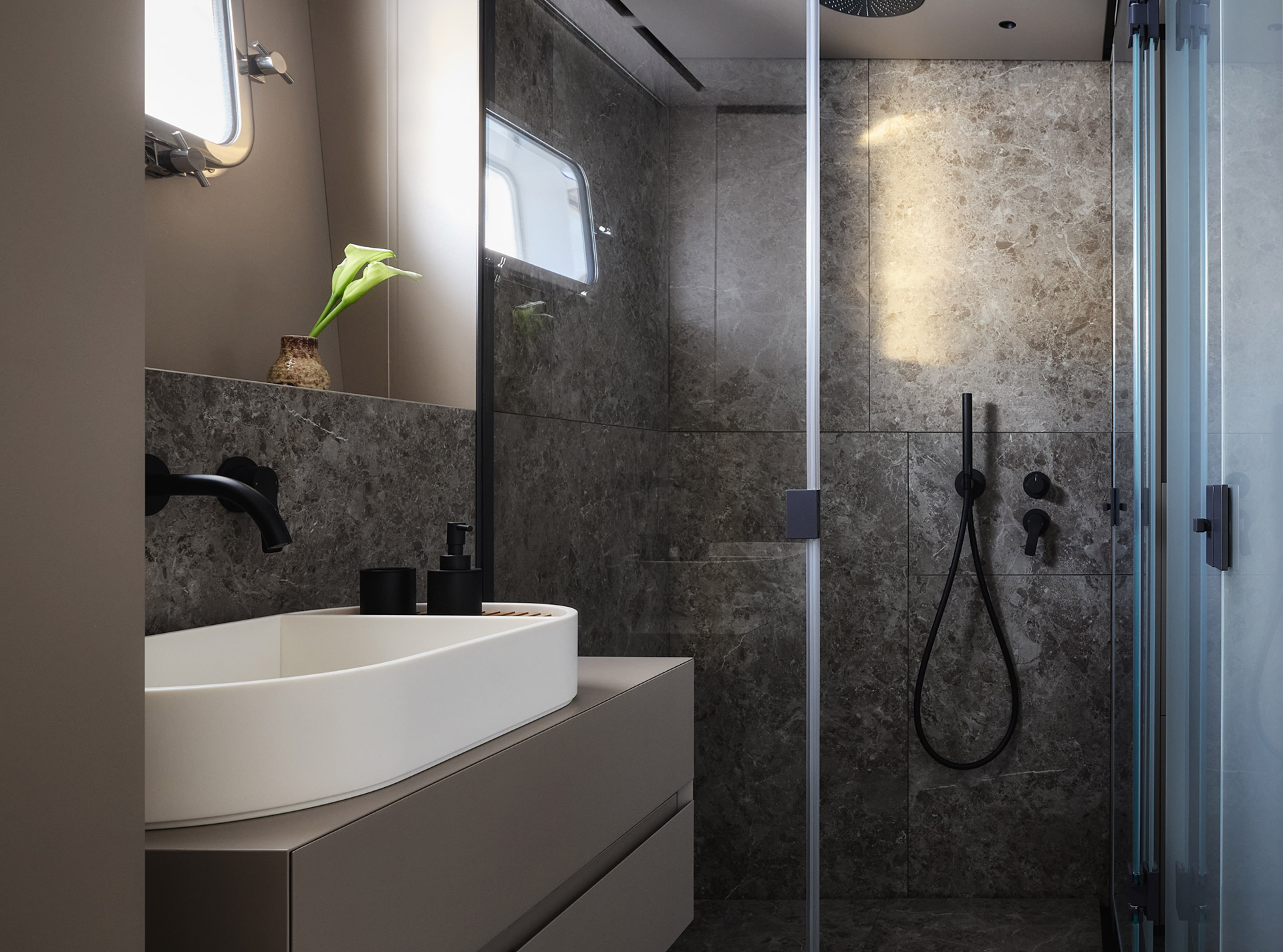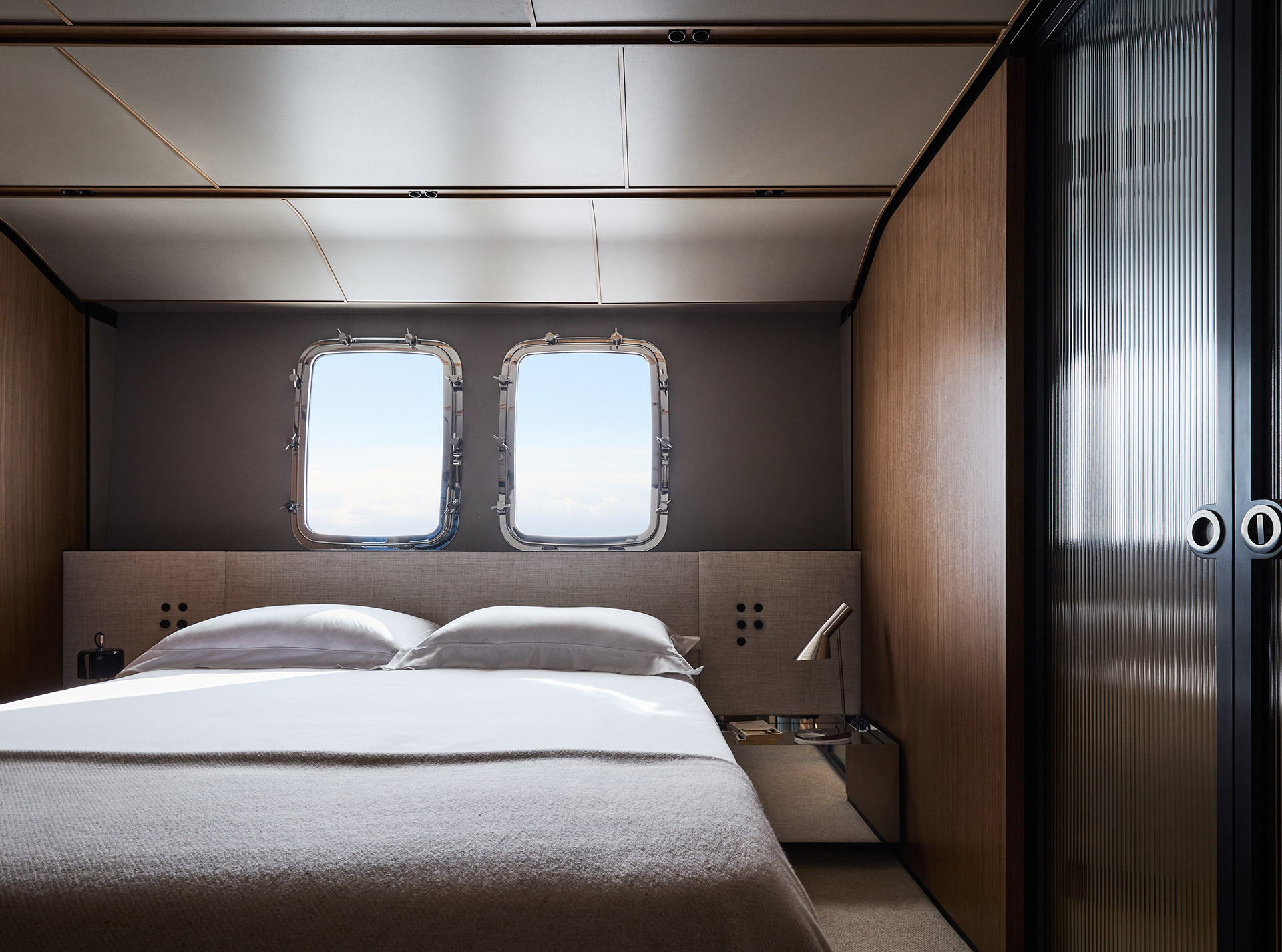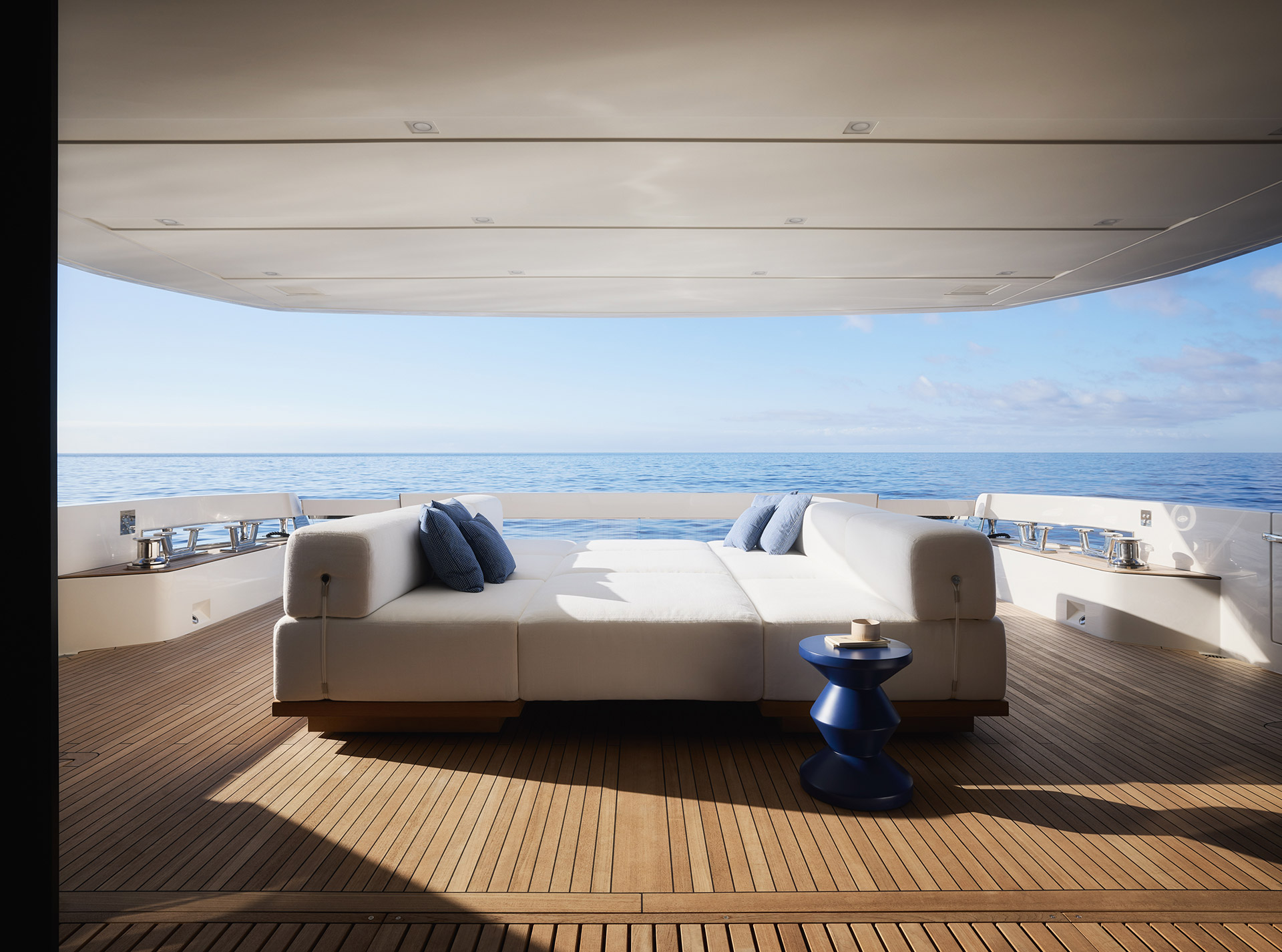 Asymmetry is not just aesthetic: it makes the interior space feel larger, offering a window onto the horizon and a sense of openness that transforms life on board.