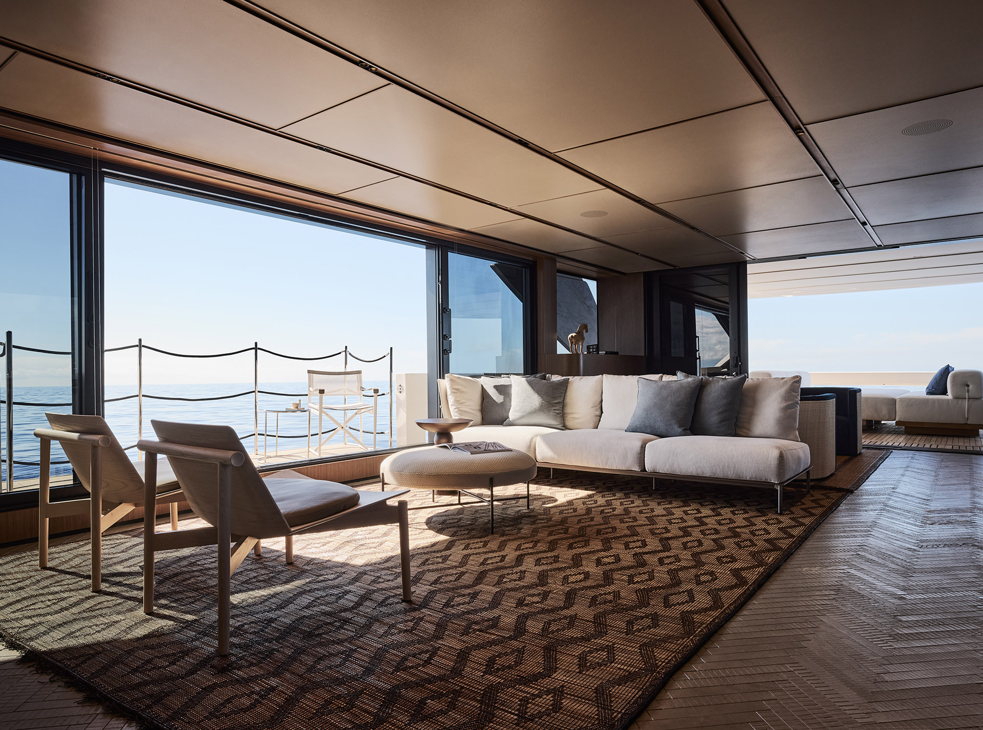 The interior of the SL110A blends contemporary elegance with functionality: asymmetrical layouts, large windows and open spaces create a sense of light, fluidity, and seamless connection with the outside.