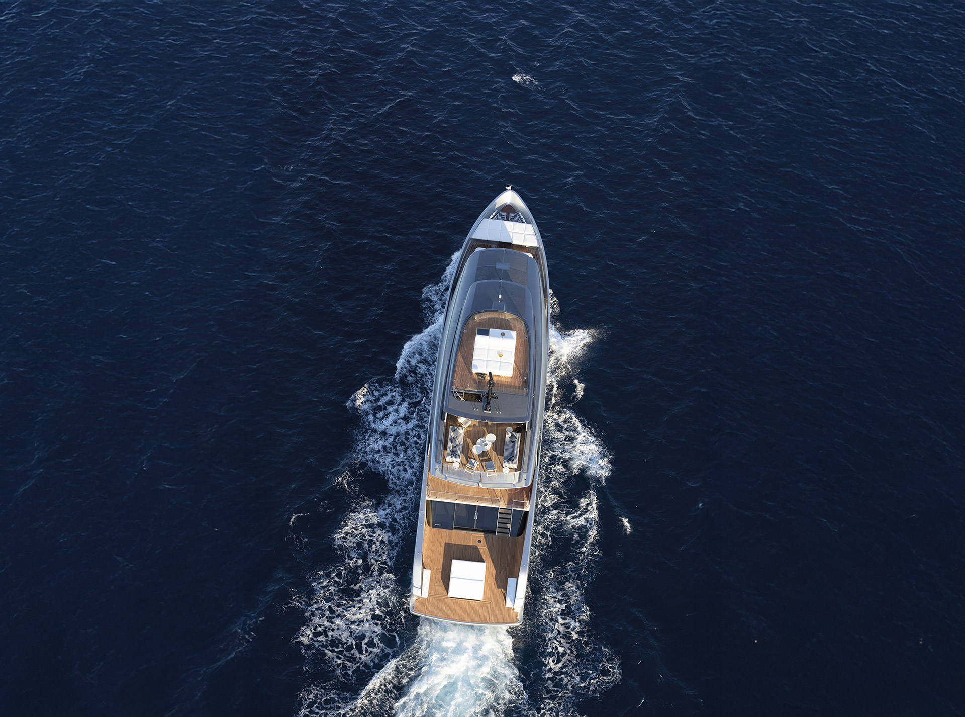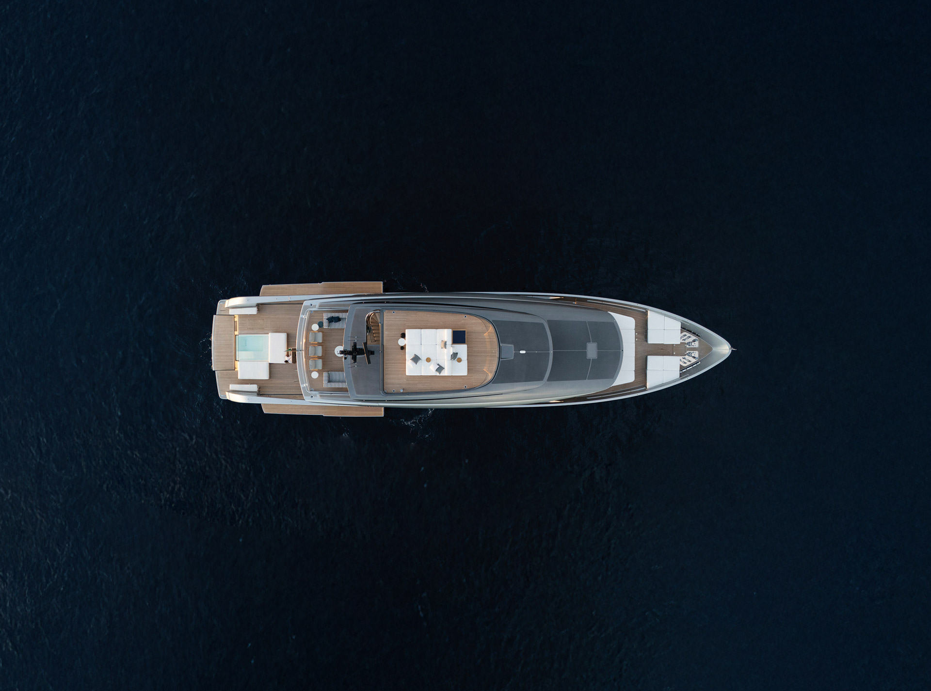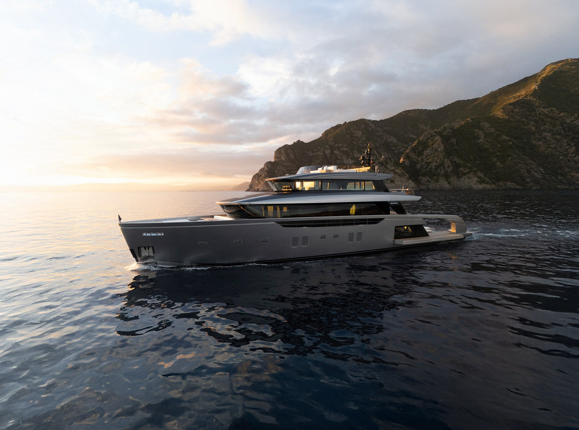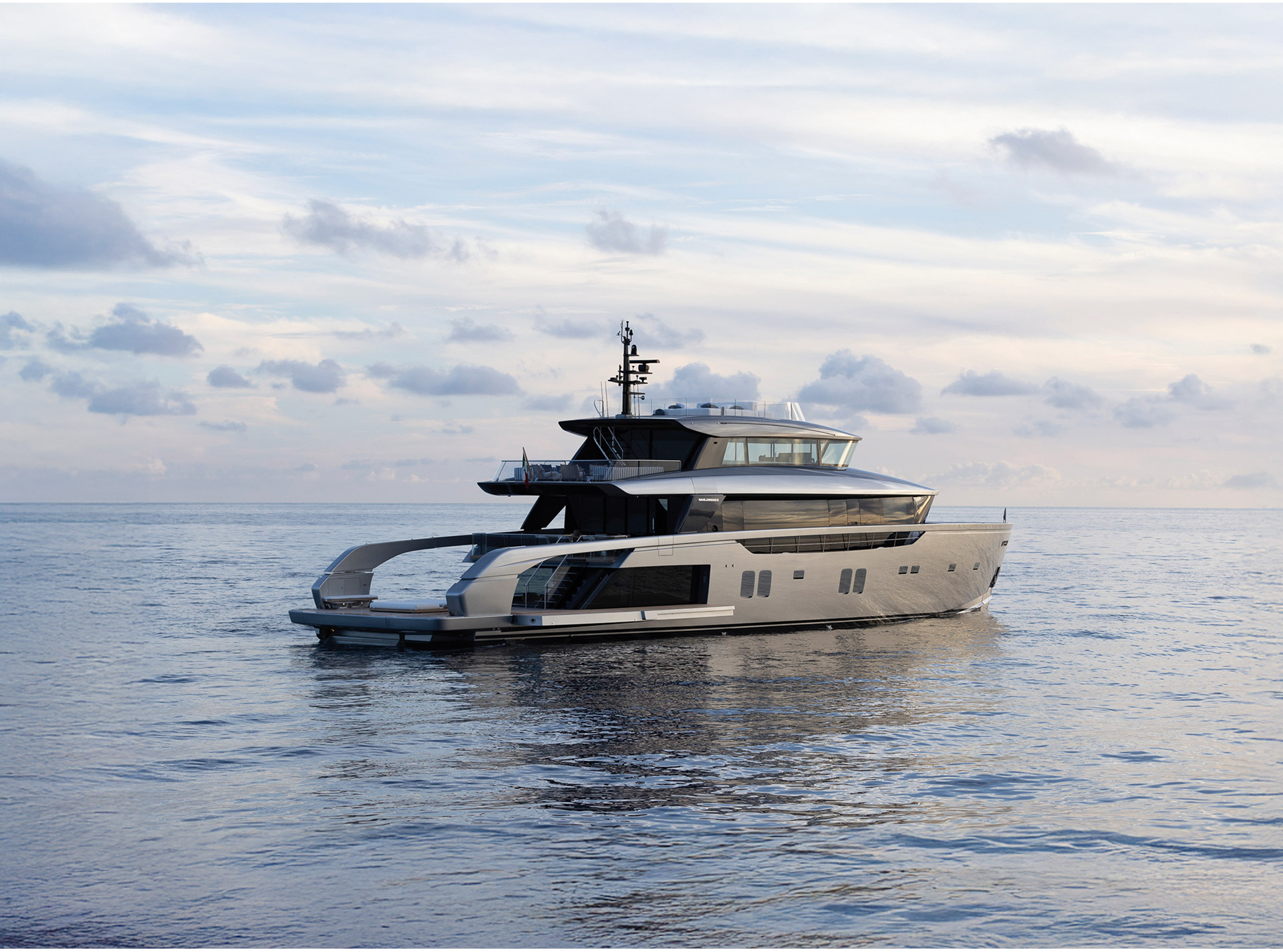 A synthesis between classic motoryacht with flying bridge and the explorer range. The largest SX offers expansive onboard spaces and a 70 sqm beach area with retractable pool and 360° panoramic views from the Upper Deck.