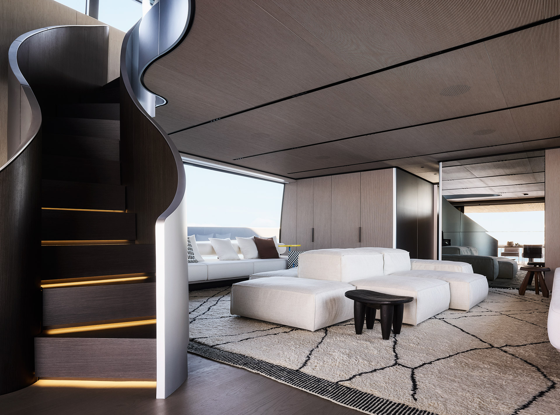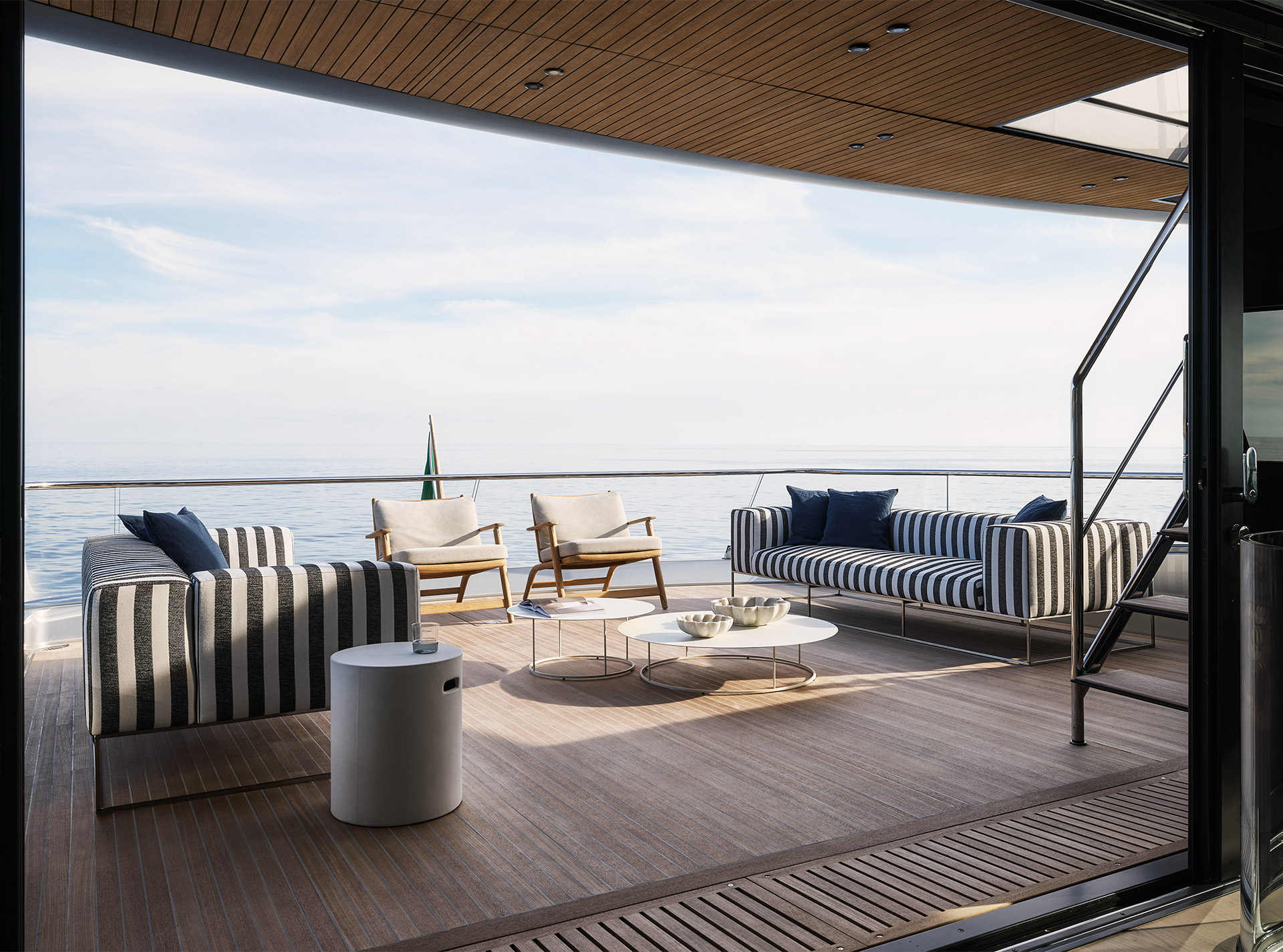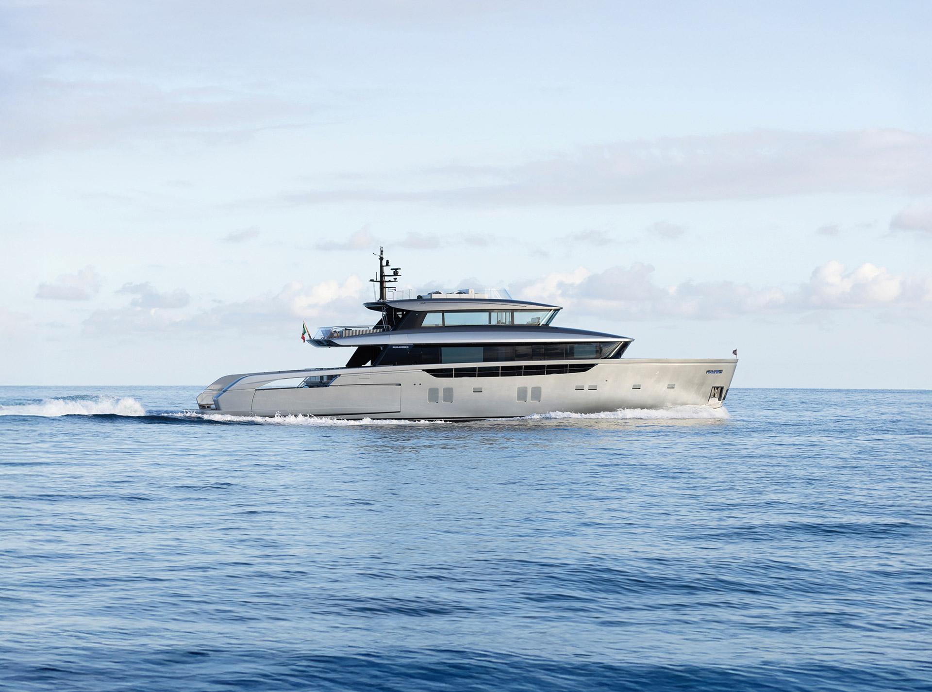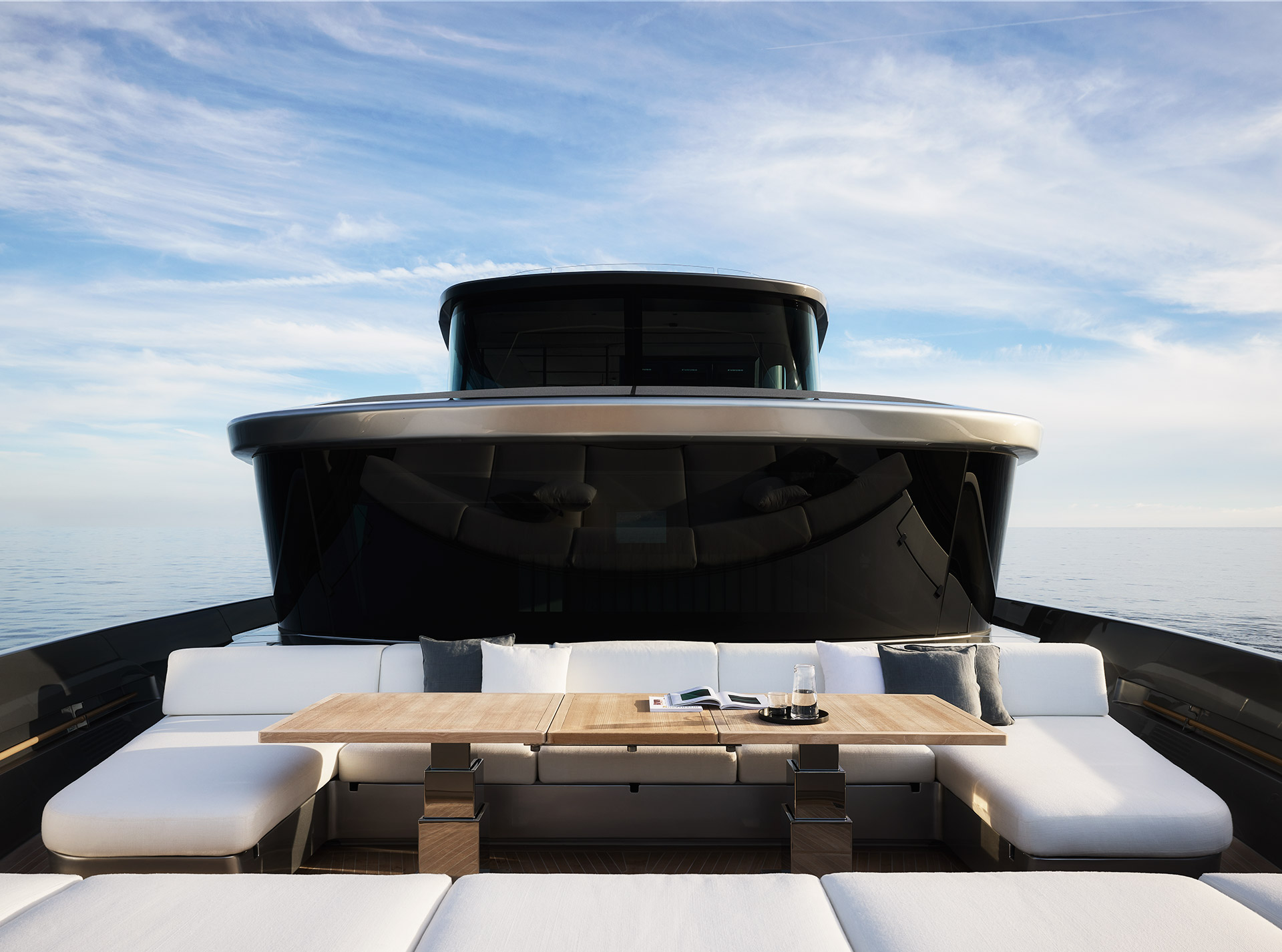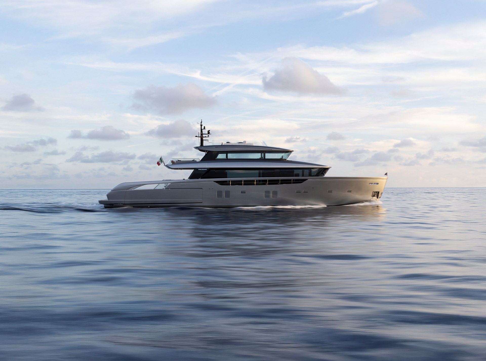 A synthesis between classic motoryacht with flying bridge and the explorer range. The largest SX offers expansive onboard spaces and a 70 sqm beach area with retractable pool and 360° panoramic views from the Upper Deck.