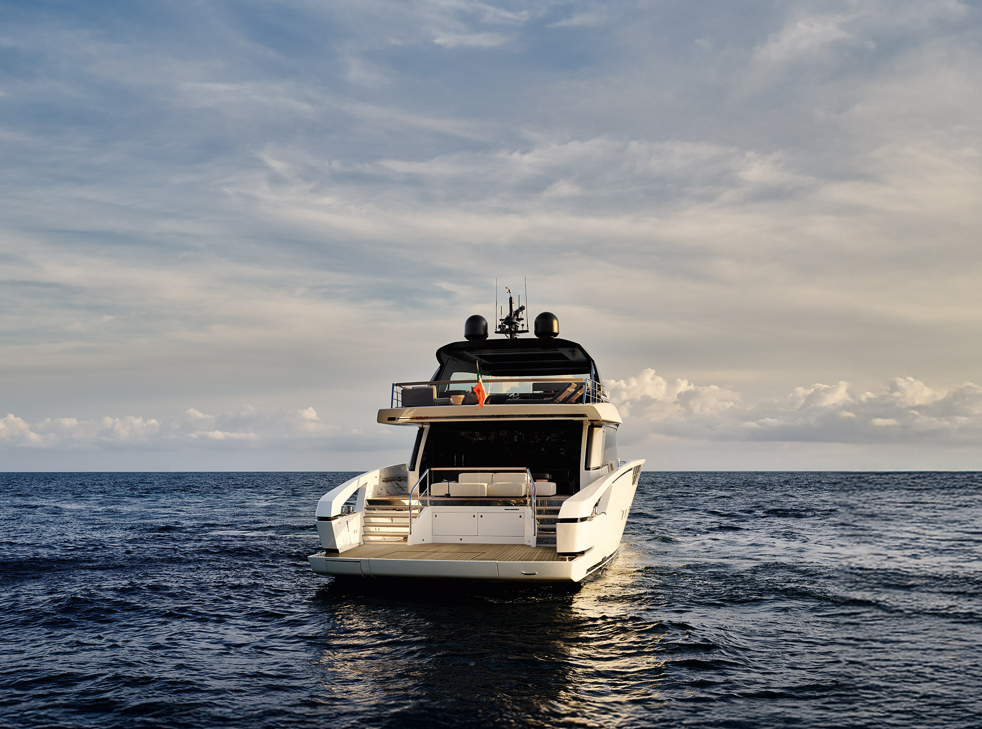 The exterior blends bold crossover proportions with refined lines. An innovative layout creates a private, loft-inspired main deck that flows seamlessly from stern to bow. Every surface balances strength and elegance for effortless life at sea.